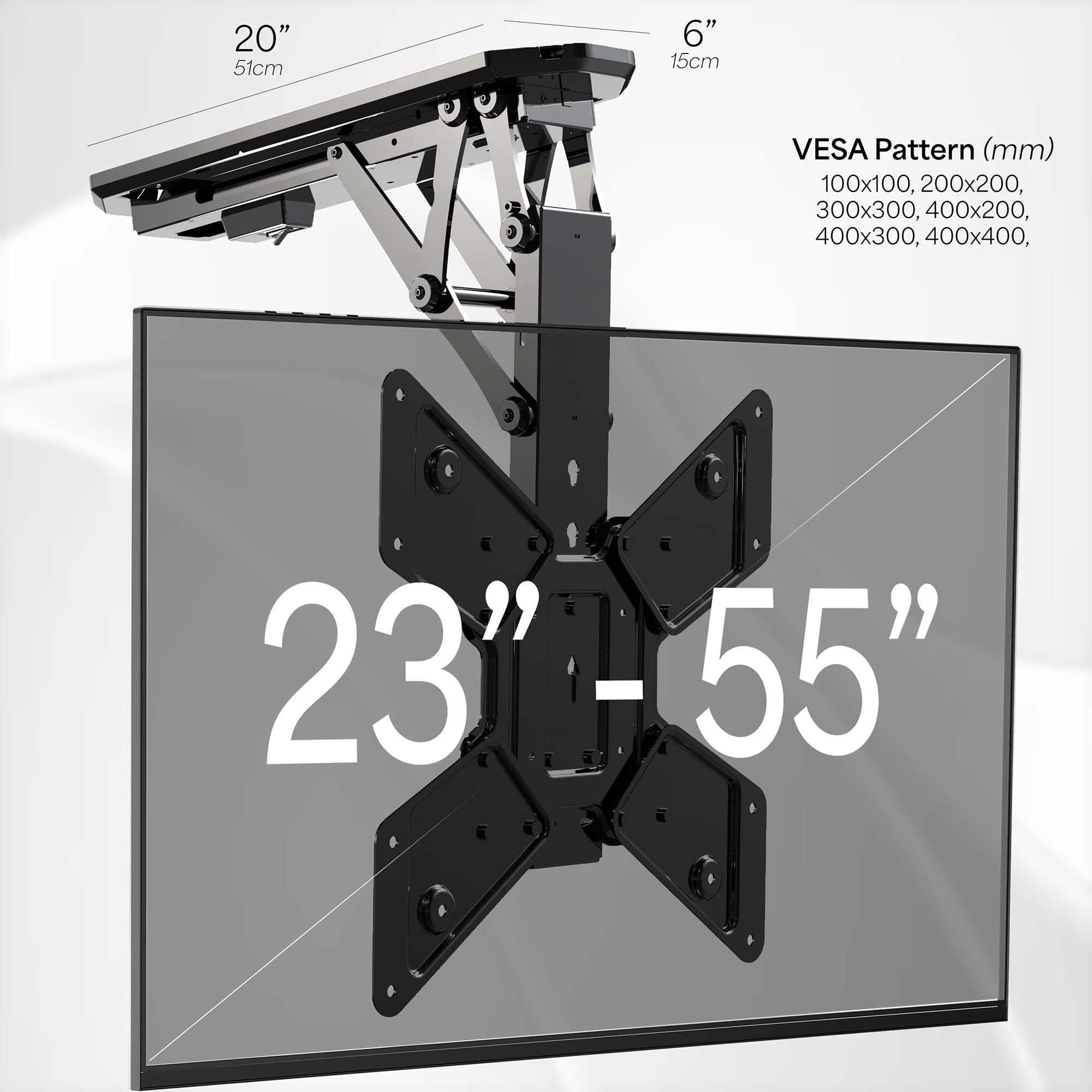 VIVO Soporte eléctrico de techo para TV para pantallas de 23 a 55 pulgadas, soporte VESA de techo inclinado motorizado abatible, MOUNT-E-FD55