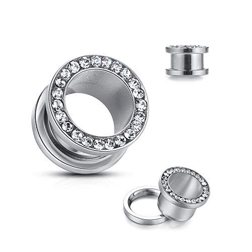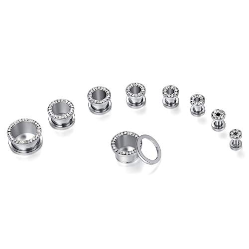 - {Size Range}-We have stainless steel ear tunnels in 8g(3mm),6g(4mm),4g(5mm),2g(6mm), 0g(8mm), 00g(10mm),1/2"(12mm), 9/16"(14mm), 5/8"(16mm) in silver color with clear zircon. May one size could fit your ear lobe, please choose the suitable size to order. - {Package}-You will get 1 pair fashion Stainless steel screw back ear gauges in same size and same color, with great package. It is the best choice for gift for friends and family. - {Material}-100% New Condition & Good Quality & Attractive Appearance & Made of Hypoallergenic Stainless Steel, bright like diamond colors, do not fadedurable, health and safe materials for ear. It is better to take off your earring when getting sleep. - {Ear Gauges}-Steel ear tunnels and plugs for body piercing , comfortable to wear and very easy to wear and take off. Fashion upgrade women and men party and wedding body piercing jewelry, makes you beautiful elegant when attending wedding, party or even work. - {Best Gift}-Wbrwp guarantee each piece of ear tunnels been manual checked carefully, please choose the suitable size to order,we will guarantee the quality of our products. It is the best choice be a gift for friend and family.
