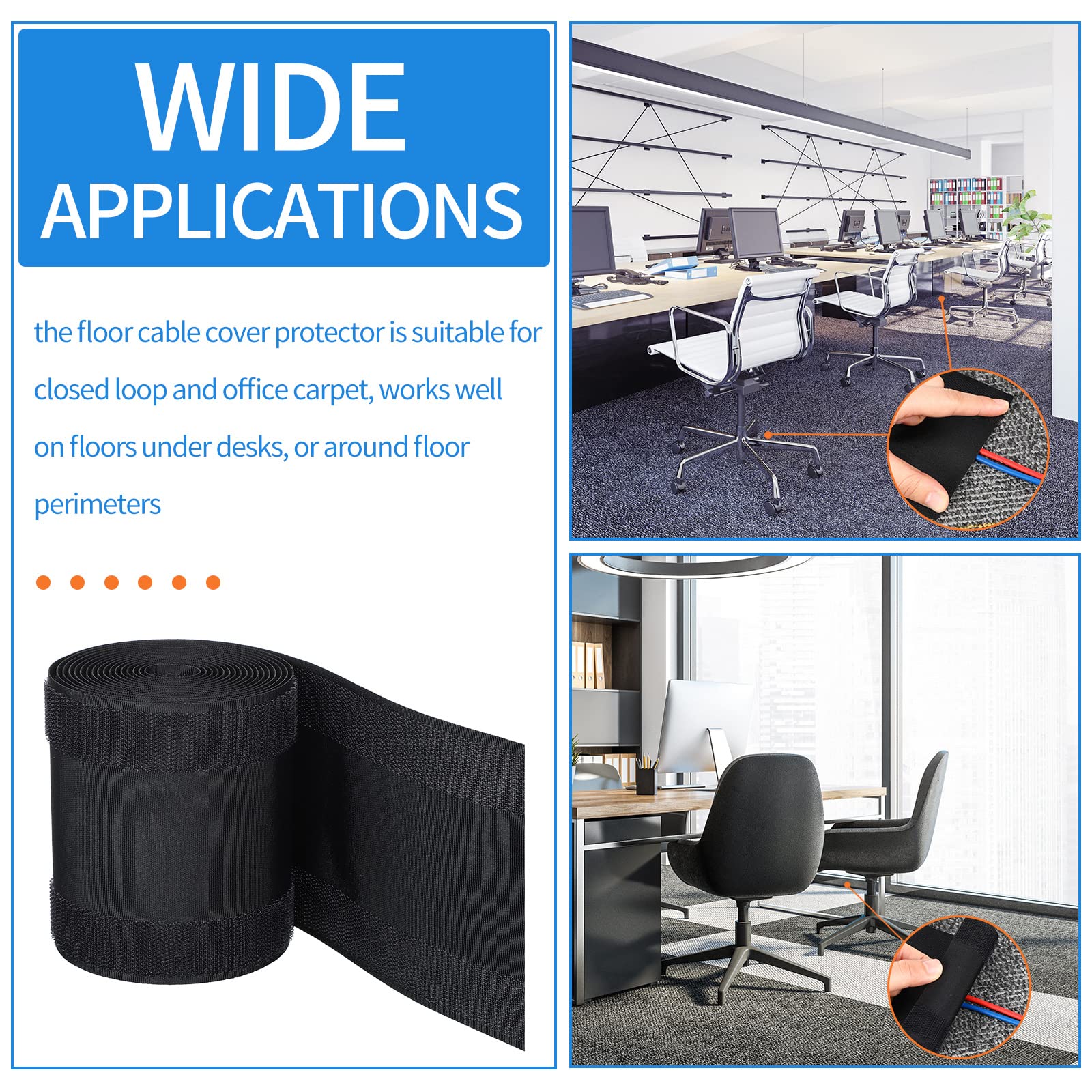 -Wide Applications: the carpet cable cover protector is suitable for closed loop and office carpet, suitable for short pile carpets with denser textures, such as polyester, nylon, wool based office carpets