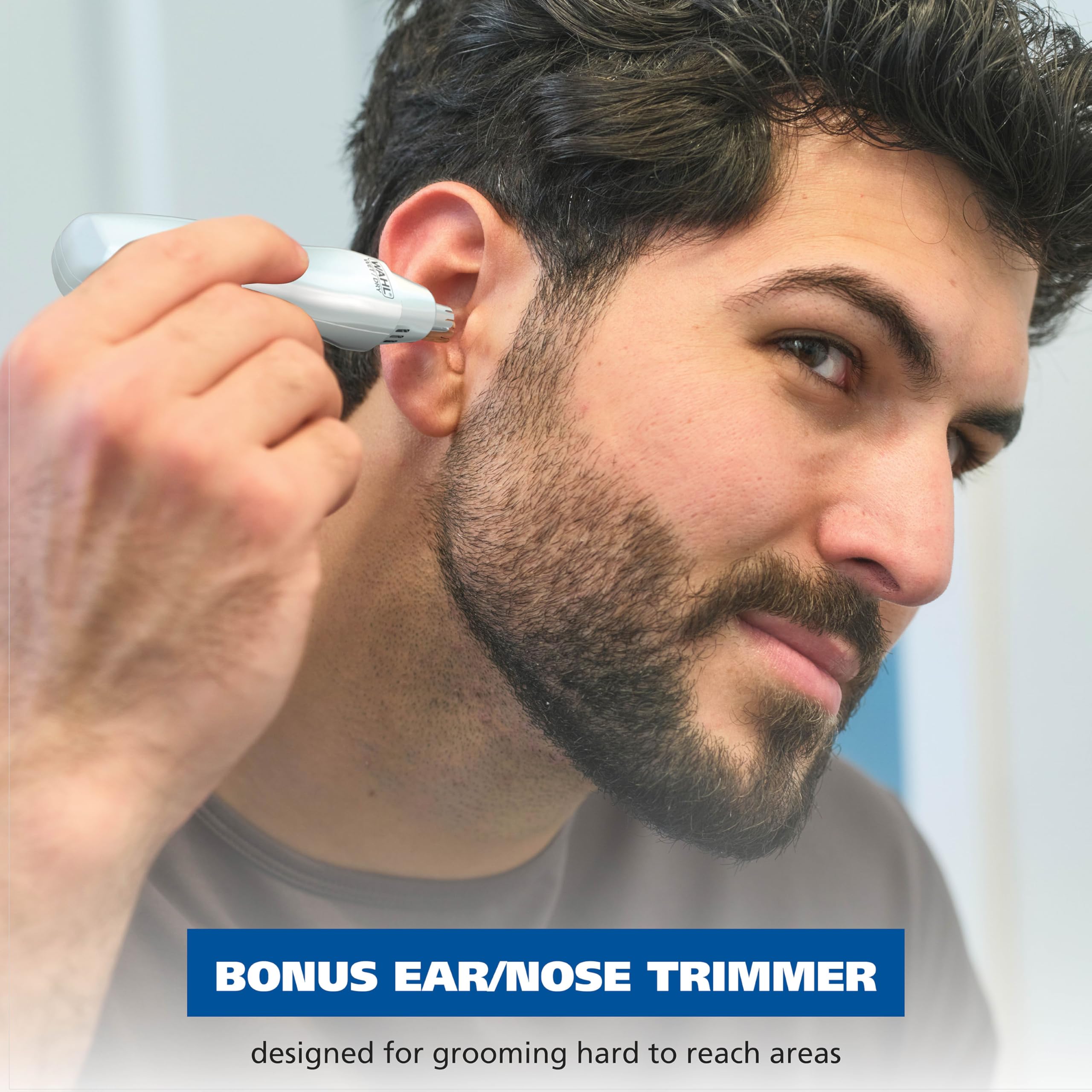 -14 Cutting Lengths - Achieve a range of beard styles with 14 different beard trimming lengths from 1/16 inch to 1/2 inch; Rechargeable for cordless convenience, comes with bonus nose & an ear trimmer with rinsable head that allows you to clean up unwanted hair
