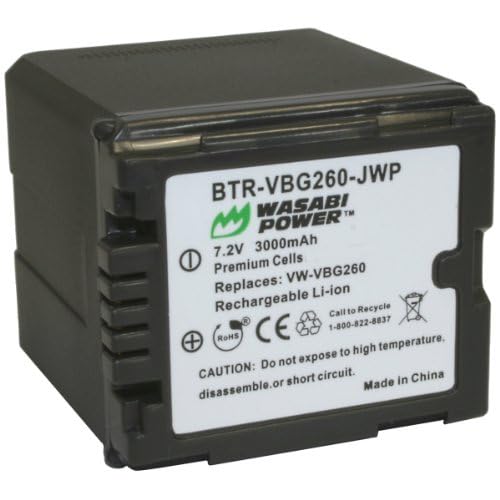 The Wasabi Power VBG260 battery replaces the Panasonic VW-VBG260 battery pack. It is compatible with many Panasonic HDC camcorders. The VBG260 is a larger, high-capacity battery that provides a longer run time than the Panasonic VW-VBG130. The Wasabi Power VBG260 features 3000mAh which provides a longer run-time between charges. It is made with premium Grade A cells to provide maximum battery life and also comes with a 3-year manufacturer warranty. Additionally, the Wasabi Power VBG260 comes fully decoded, so it will display the remaining battery life and usage time and is completely compatible with all Panasonic original equipment including the Panasonic charger. Compatible Panasonic models include: AG-AC7 AG-AF10 AG-HMC40 AG-HMC80 AG-HMC150 HDC-HS250 HDC-HS300 HDC-HS700 HDC-SD600 HDC-SD700 HDC-SDT750 HDC-TM300 HDC-TM700 SDR-H80