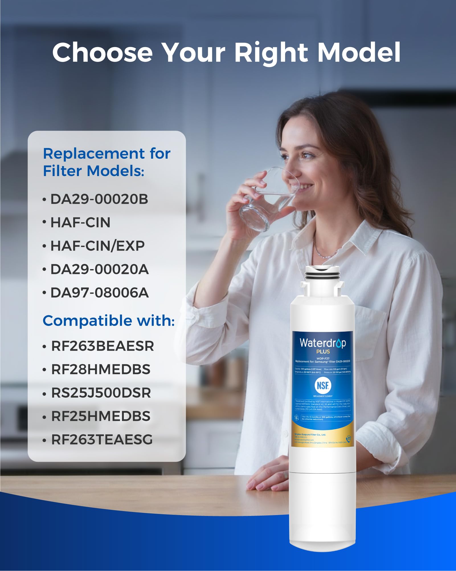 Waterdrop Plus DA29-00020B Filtro de agua para refrigerador certificado NSF 401&53&42, reemplazo para filtro de agua Samsung® HAF-CIN/EXP, HAF-CIN, FMS-2, RF28HMEDBSR, RF263BEAESR, 3 filtros (el paquete puede variar)