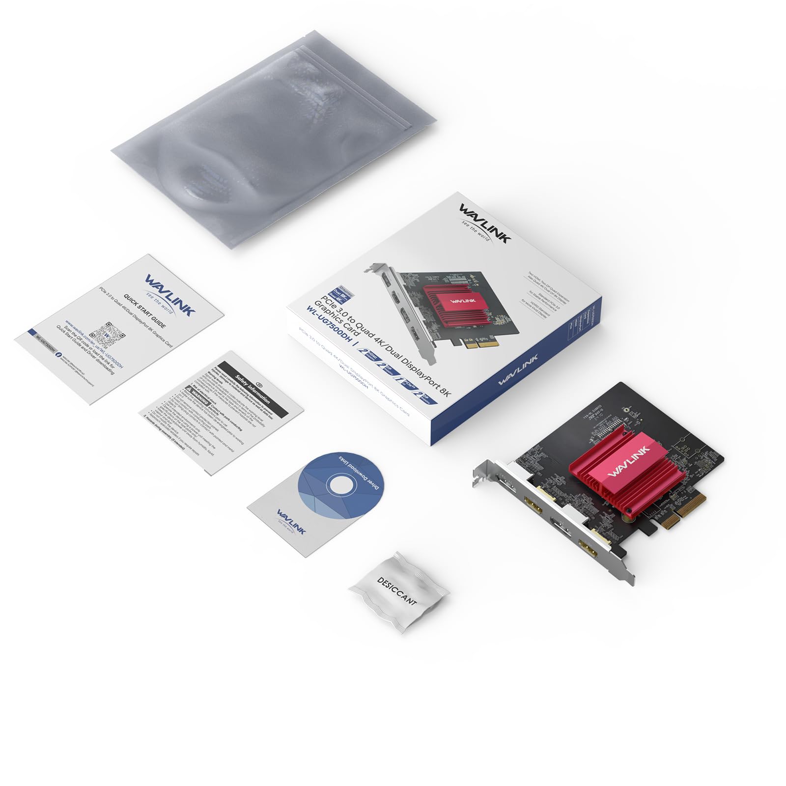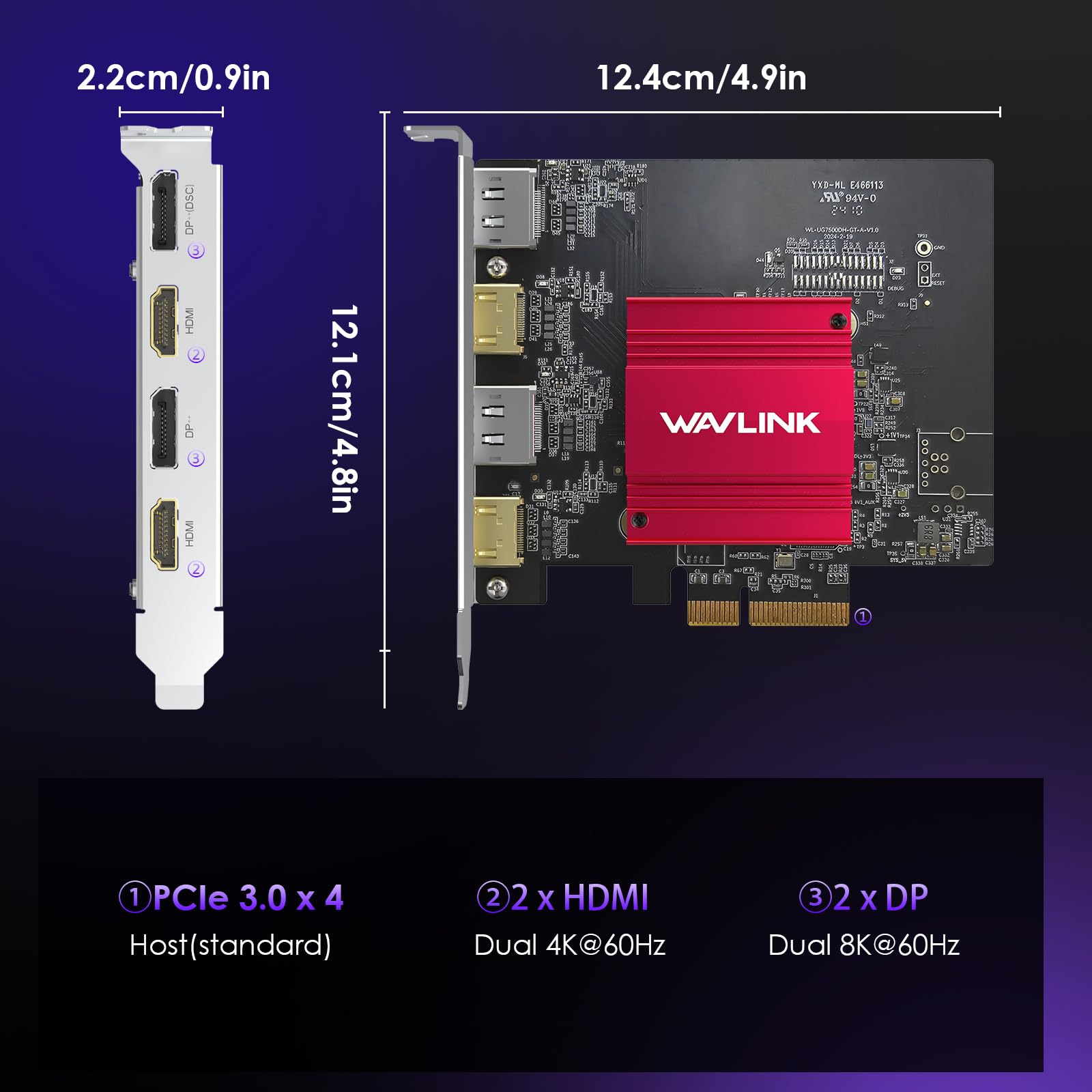 Tarjeta WAVLINK 8K/4K PCIE 4 monitores - 2DP+2HDMI, adaptador PCIE a HDMI y DP admite salida extendida de 4 monitores para Windows 11/10 y Ubuntu con DisplayLink DL7400 (GPU no para juegos)