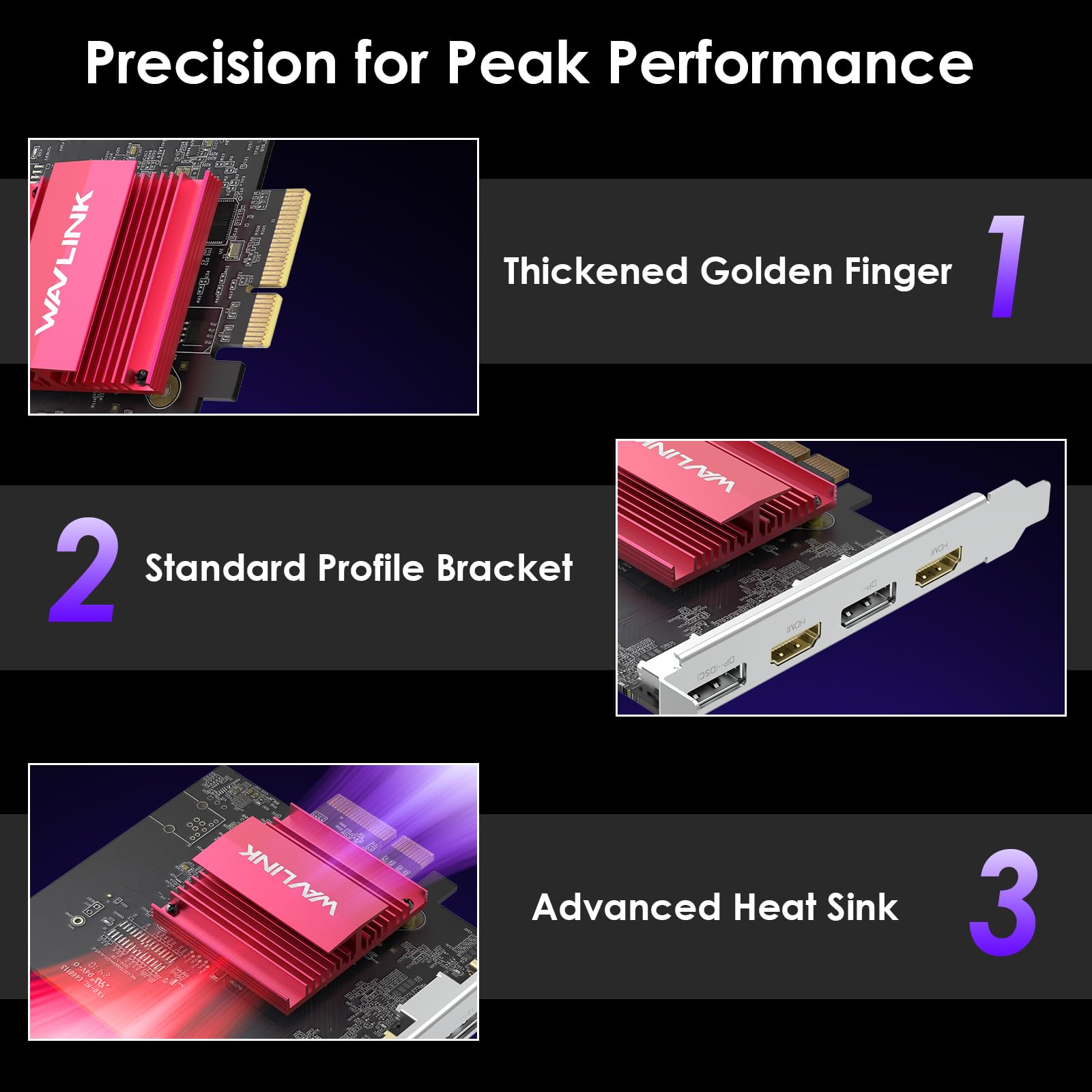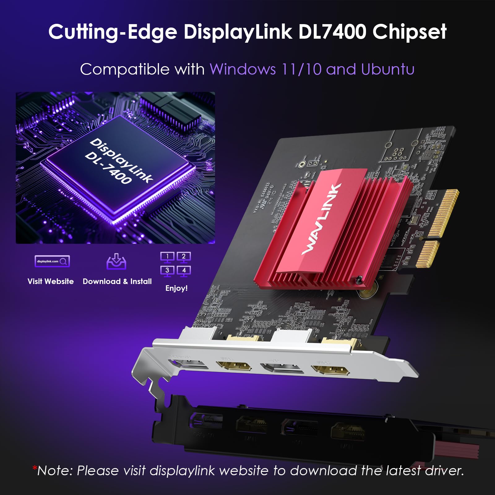 -【DisplayLink DL7400 Chipset】 Powered by the cutting-edge DisplayLink DL7400-N chipset, this pcie Monitor card ensures reliable video output across multiple displays. Ideal for Monitor cards in light office tasks—document editing, web browsing, and video conferencing—with smooth data decoding for consistent quality. A true innovation in pcie 3.0 Monitor card performance