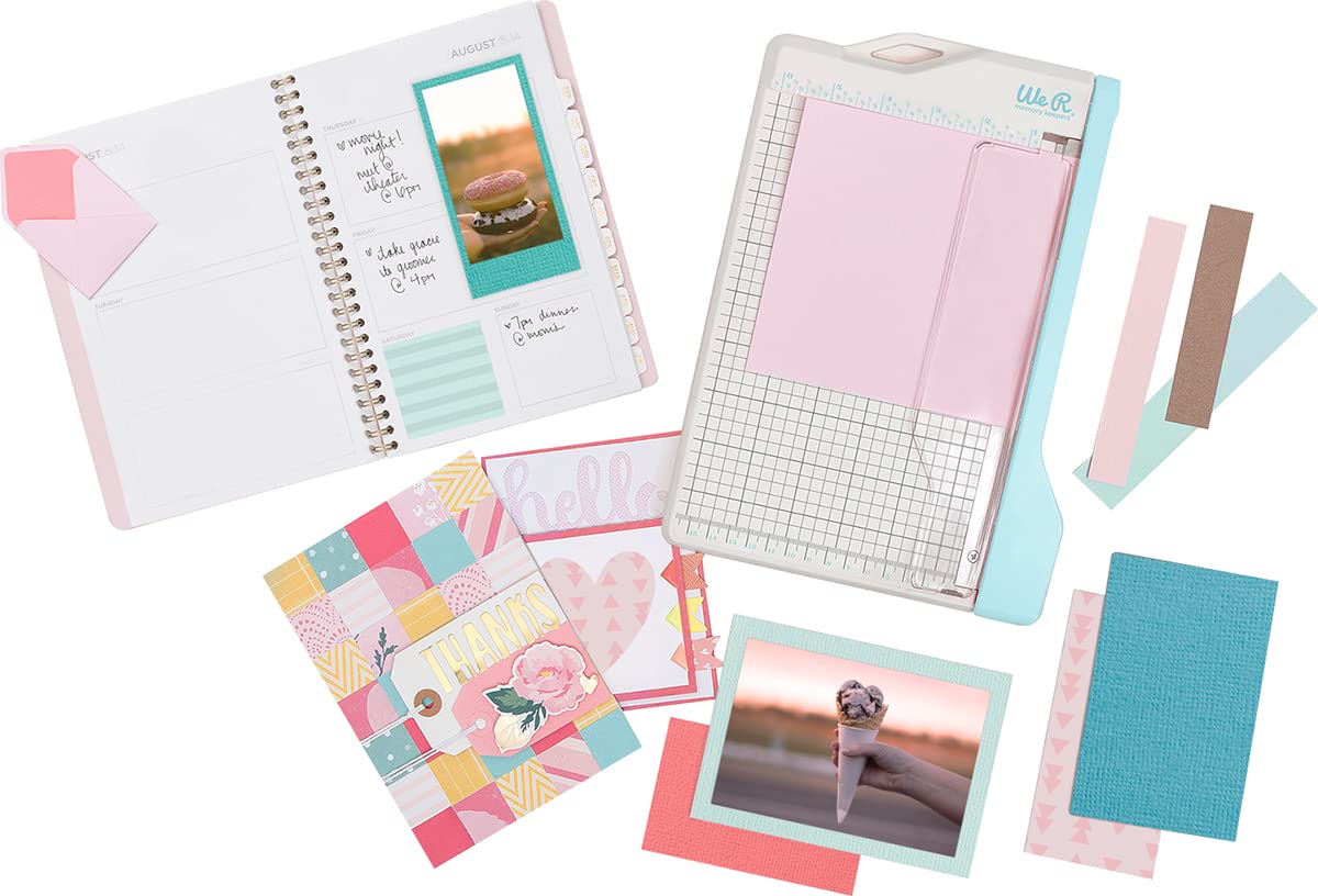 We R Memory Keepers Mini guillotina cortadora de papel – Azul, cortador de papel compacto, rejilla de 1/4 de pulgada para corte de precisión, corta hasta 3 hojas, perfecto para hacer tarjetas, diarios y pequeños proyectos de manualidades