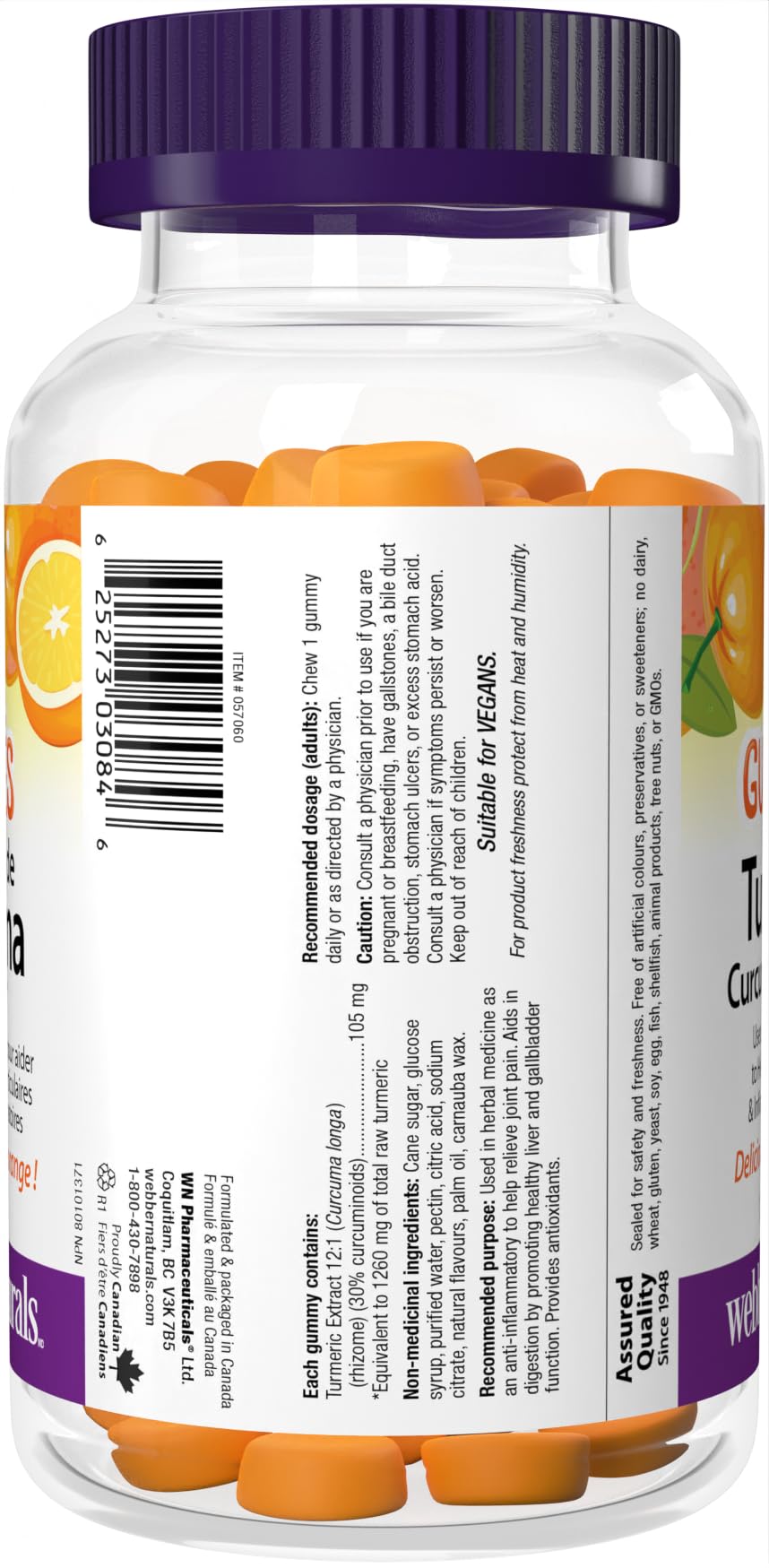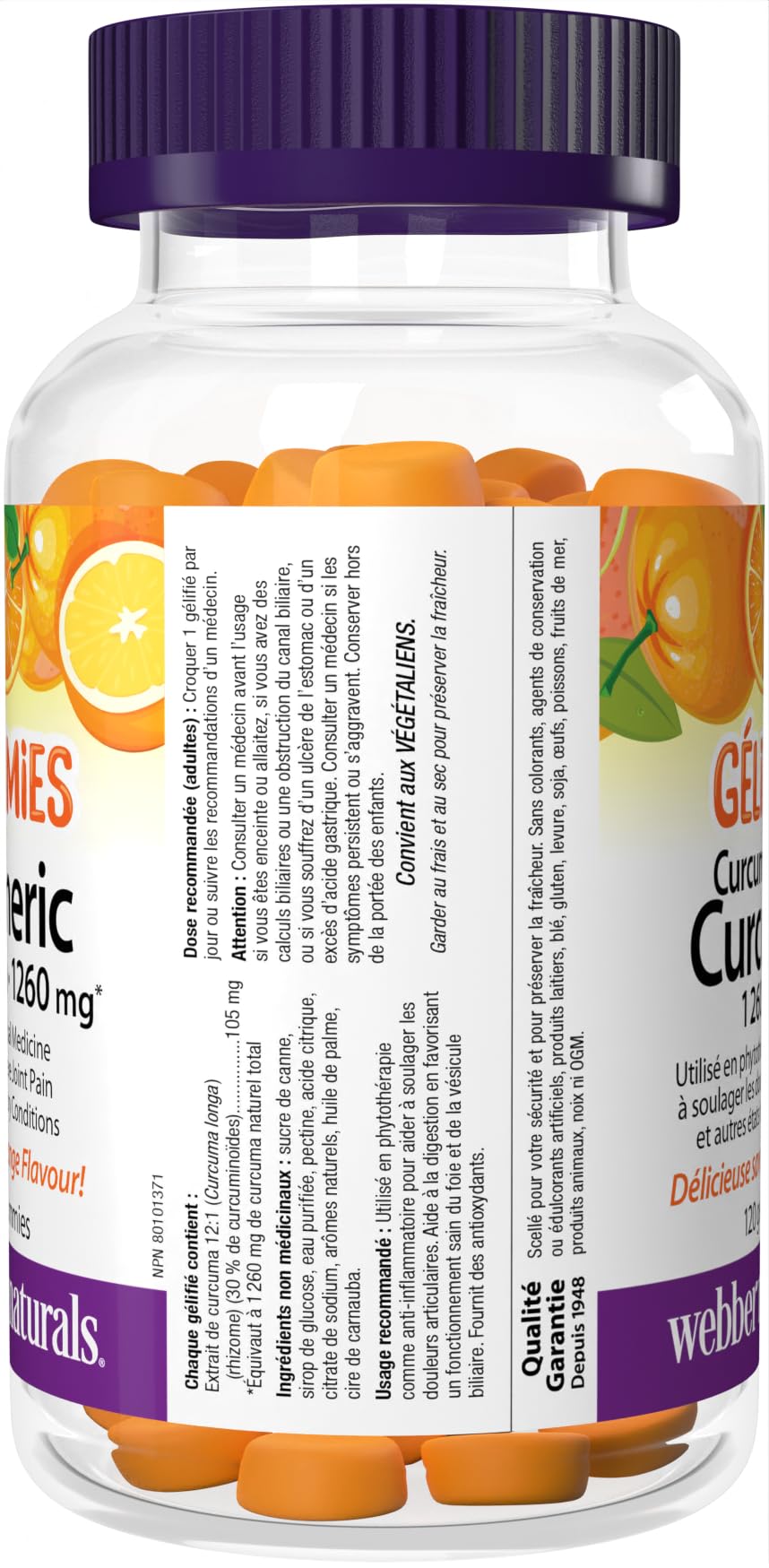 Webber Naturals Gomitas de curcumina y cúrcuma 1260 mg Naranja, 120 gomitas