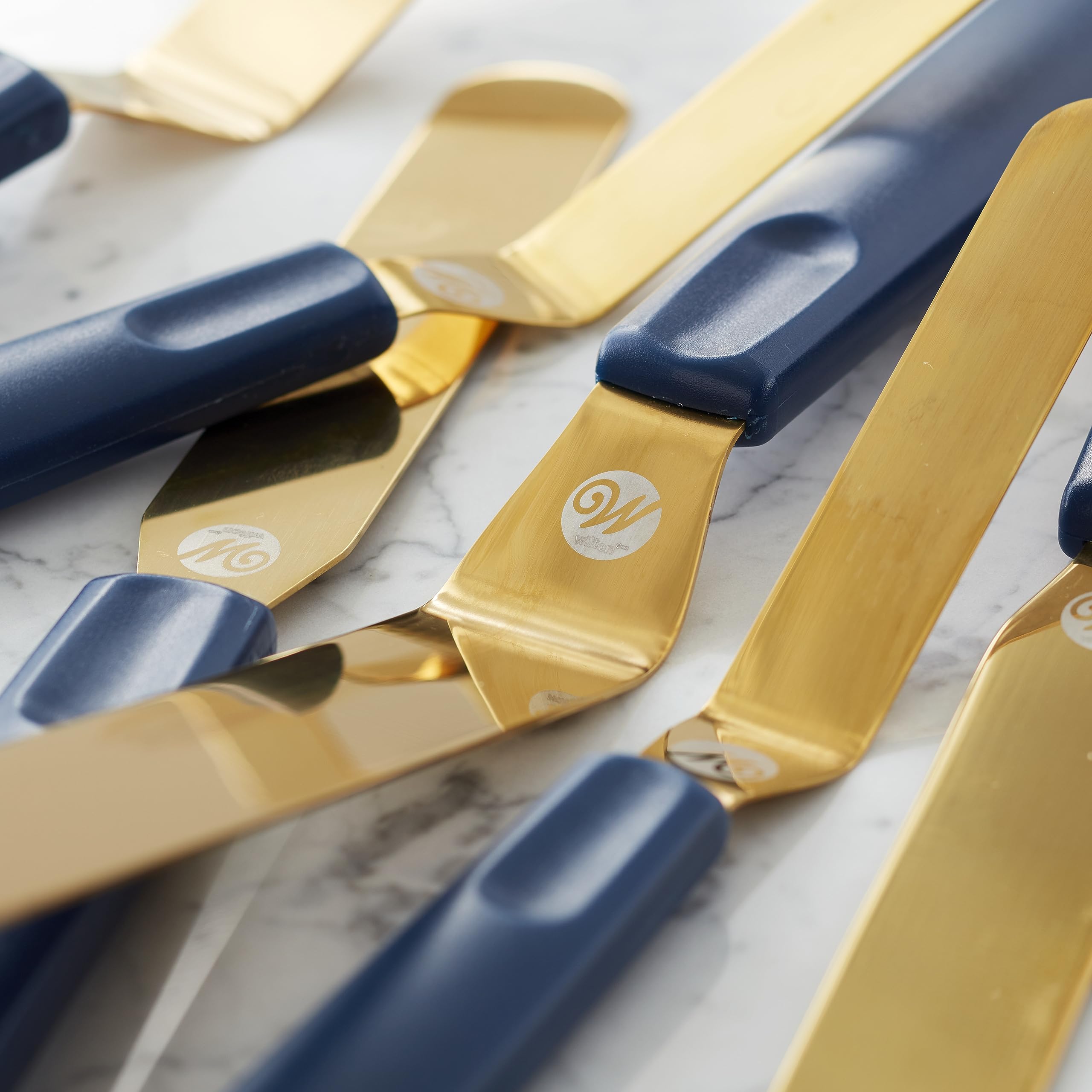 Conjunto de espátula de glaseado azul y dorado de Wilton Navy - Spatula para decoración de pastele