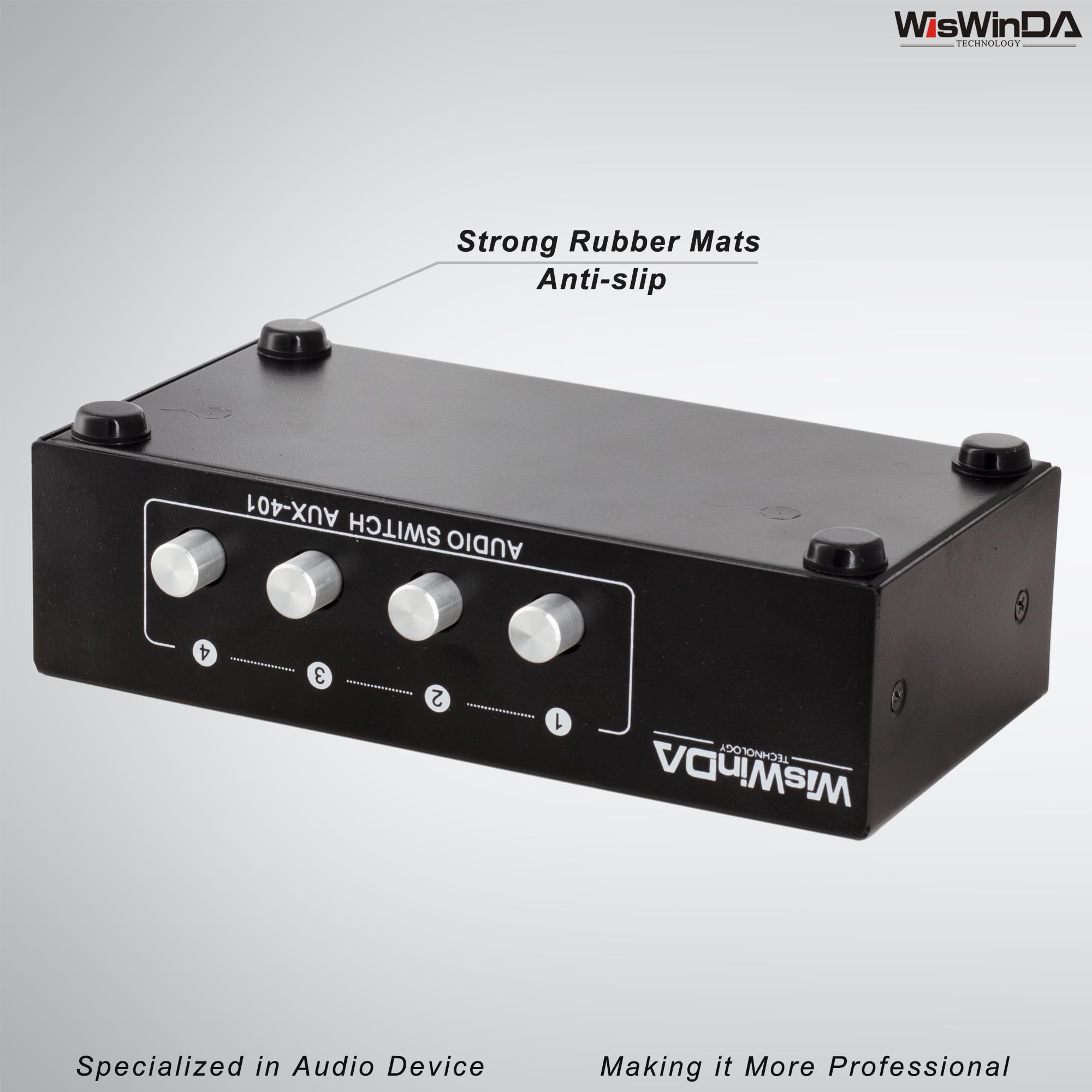 -WisWinDa RCA 3.5mm Aux speaker switch box is well designed with metallic shell with strong rubber mat make it very durable and convenient in using, quality RCA connector with gold coating make it no any signal loss in transmission.