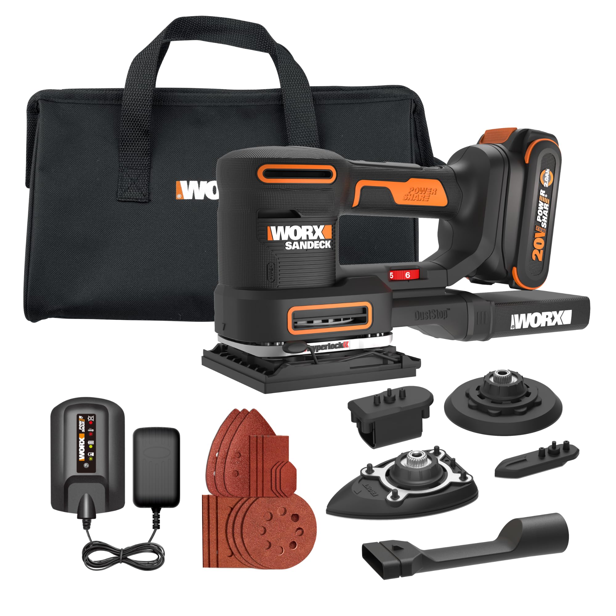 -[5-in-1 functions] This 20V cordless sander combines random orbit, finish, detail, contour, and fin.....