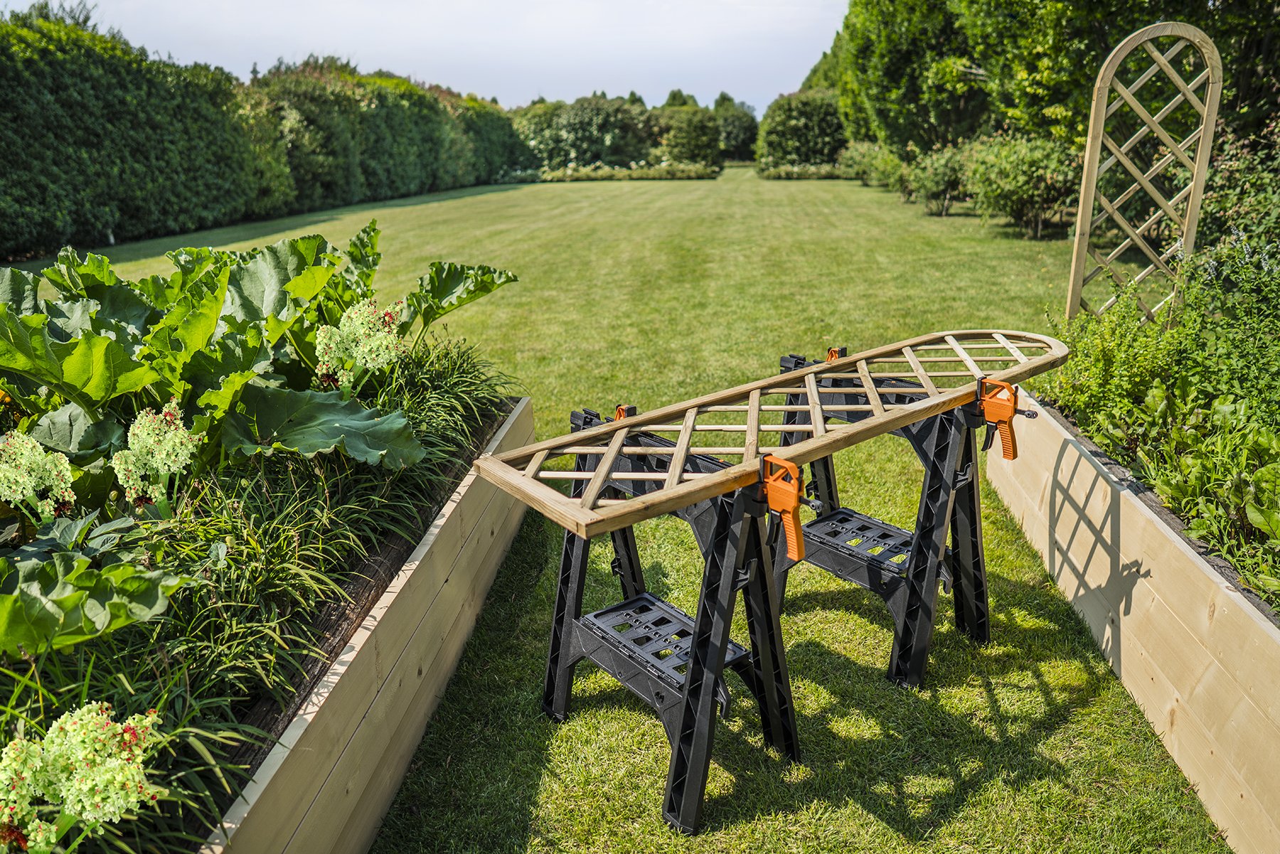 -[CUSTOM MADE CLAMPS] These two sawhorses come with integrated bar clamps to fasten big or small projects securely in both vertical and horizontal positions