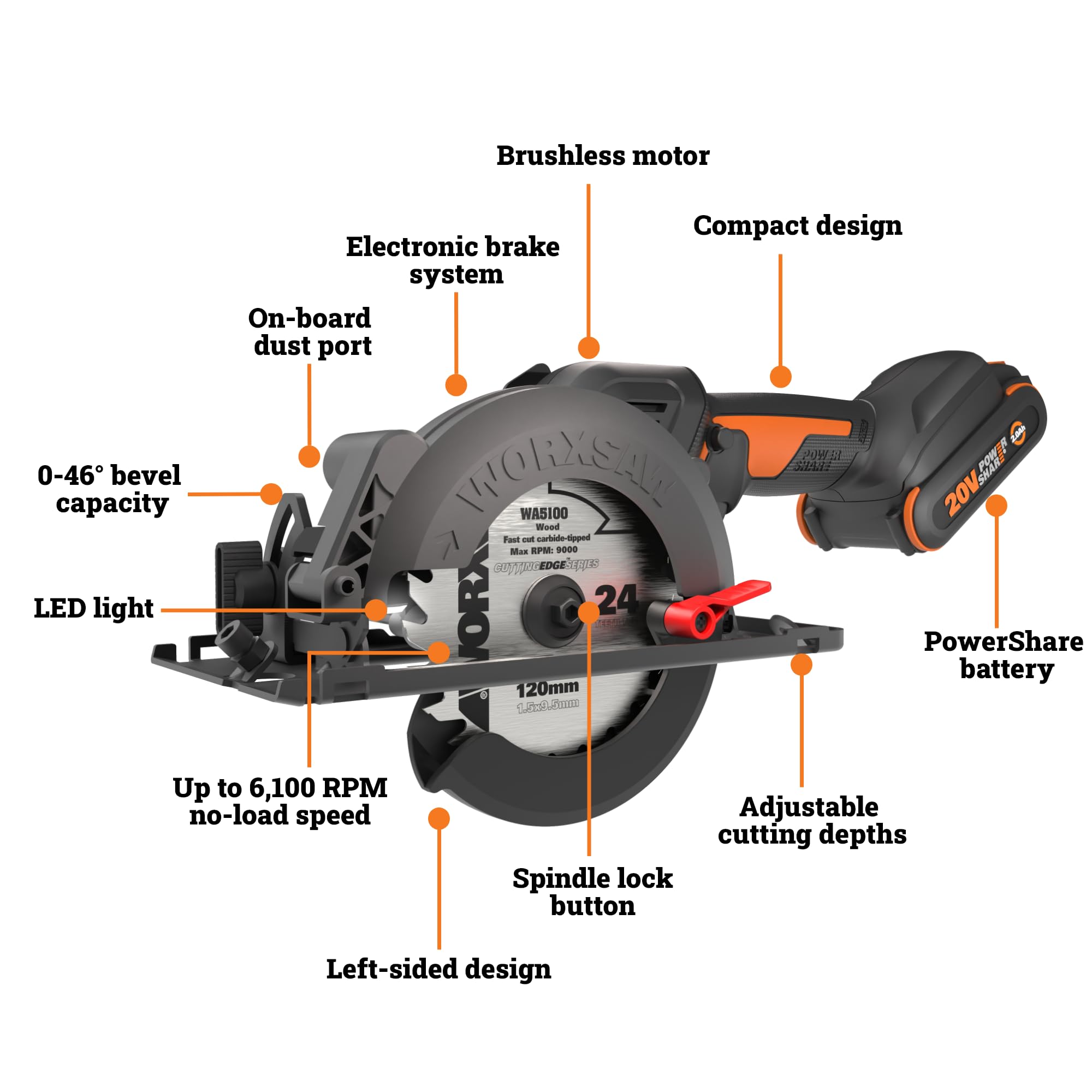 Worx WX531L 20V WORXSAW Sierra circular compacta inalámbrica de 4,5"