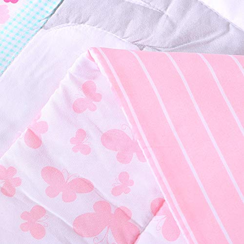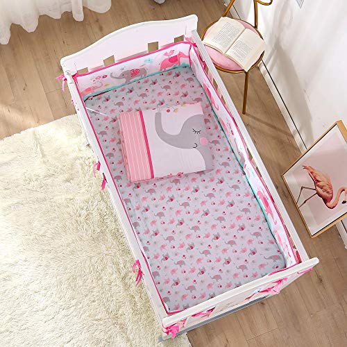- 7 PiecesPink Crib Bedding Set => 1 Comforter + 1 Fitted Sheet+1 Bed Skirt+ 4 Rail Padding - Size Guide:Suitable for Standard Crib Bed (51 x 27 inch) 1 comforter: 33*42 inch; 1 fitted sheet:50*27+8 inch;1 bed skirt:50*27+9.8 inch; 4 rail padding of 2 X long 52*10 inch and 2 X short 28*10 inch - Gift Idea: A great gift idea for house warming, birthday and baby shower - Material & Wash: Elephant 3 Piece bedding set made of Cotton&Polyester; Machine Washable & Hand Wash.No fade and shrink - Notice: For any questions, please feel free to contact us. We will try our best to make you happy with the shopping in Wowelife
