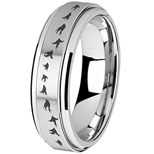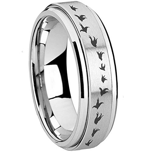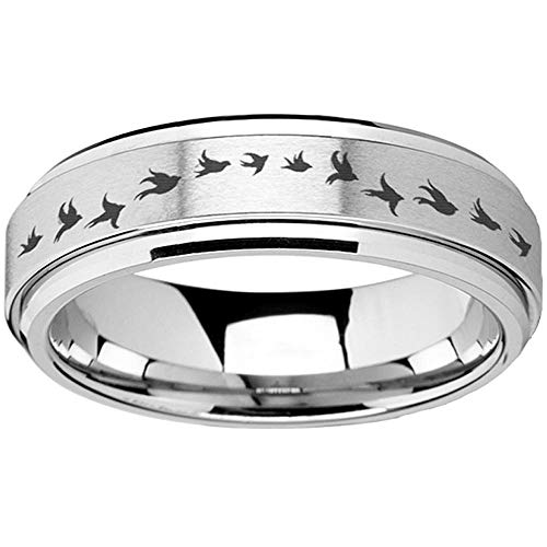 XAHH Anillo de acero de titanio pulido de 6 mm para hombre con banda de migración de aves migratorias grabada con láser, negro plateado
