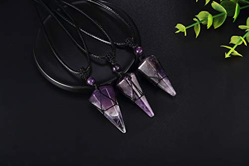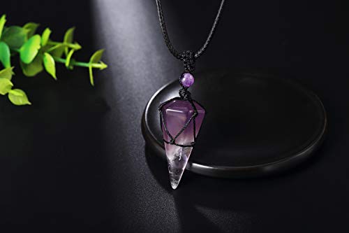 - Each crystal stone pendant is carefully selected and polished. The pointed crystal stone size is 38mm*18mm. The braided rope is 31" adjustable and 2mm in thickness.