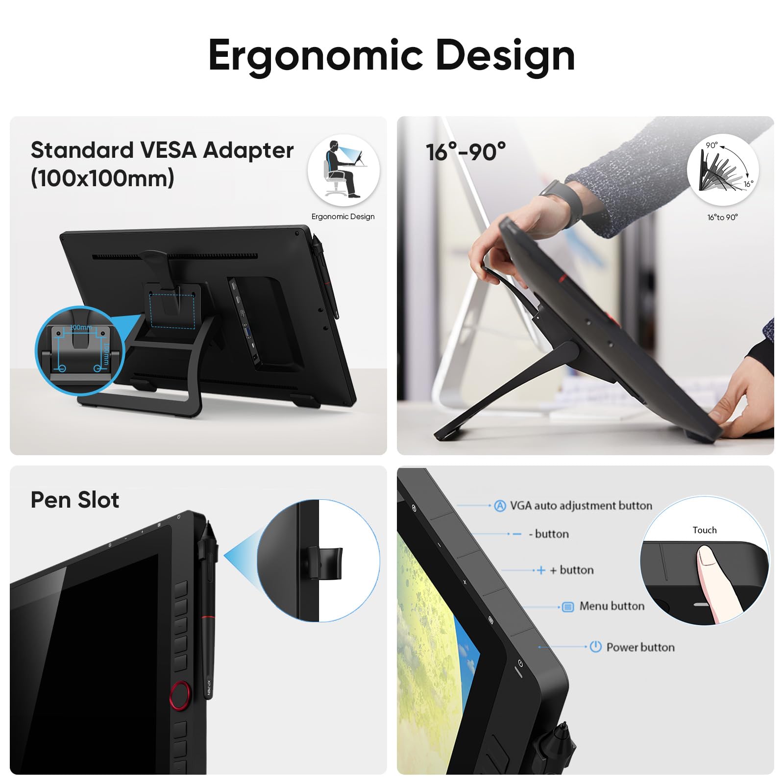 -Adjustable Stand for Creative Comfort: The 16° to 90° adjustable stand allows graphic designers and illustrators to find the perfect angle for their work, reducing strain during long sessions. The specially designed cable slot and detachable back cover are particularly advantageous for animators and video editors, helping them maintain a clutter-free and organized workspace
