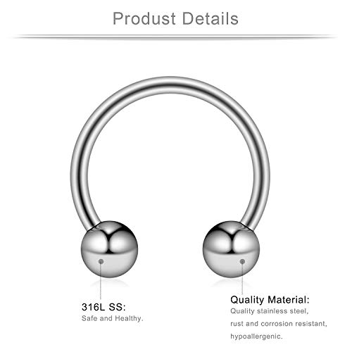 Ruifan 24 piezas de acero quirúrgico CBR tabique nasal herradura pendiente ceja lengua labio pezón Piercing anillo con bolas y picos 14G 8-14mm plata