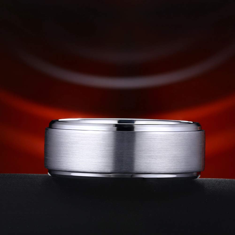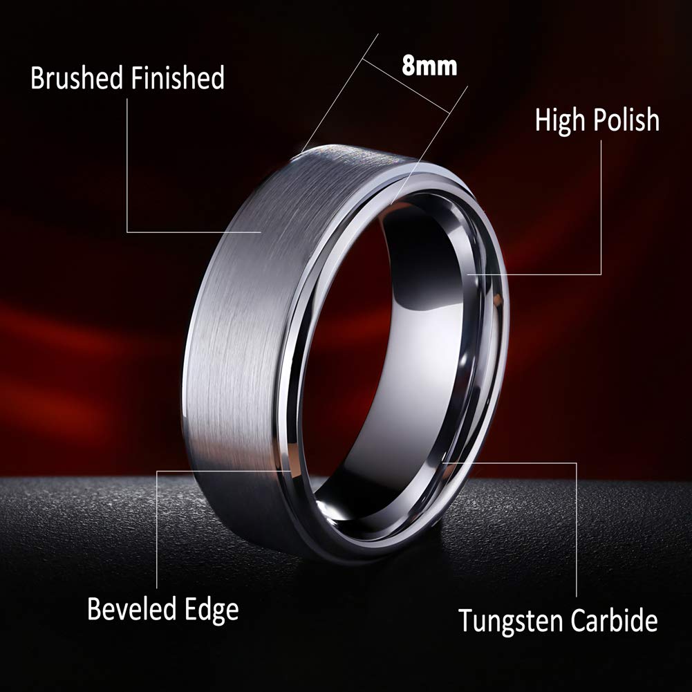 Anillos de tungsteno de Yilinger para hombres - Baras de boda Step Edge Confort Confort Compromiso Anillo Matte Matte Biselado, de 8 mm de ancho 7 a 13 Anillos de tungsteno de Yilinger para hombres - Baras de boda Step Edge Confort Confort Compromiso Anillo Matte Matte Biselado, de 8 mm de ancho 7 a 13