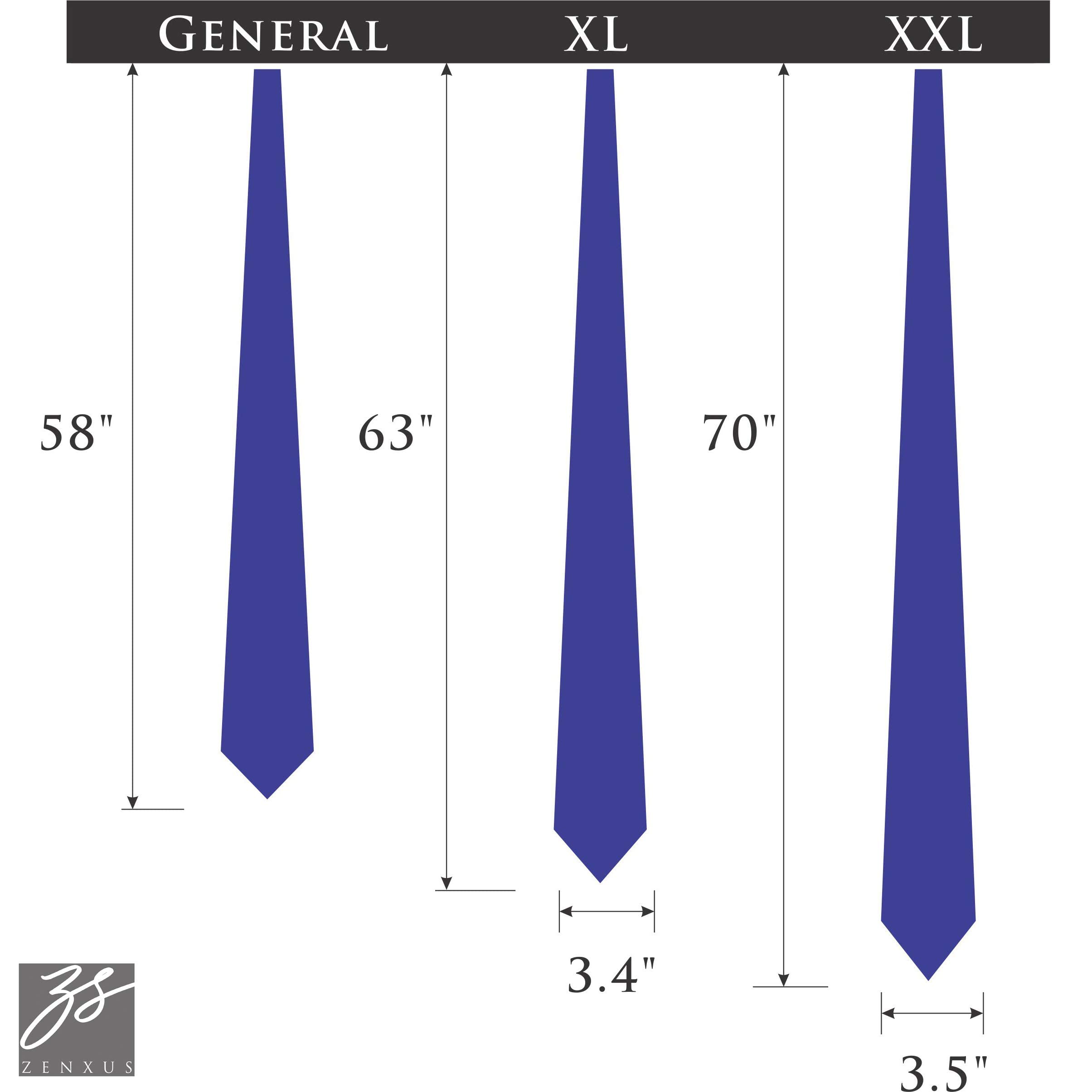 -XL tie size: 63"(L) * 3.4"(W); XXL tie size: 70"(L) * 3.5"(W) at widest point; Please allow ±1 inch on length due to hand made articles