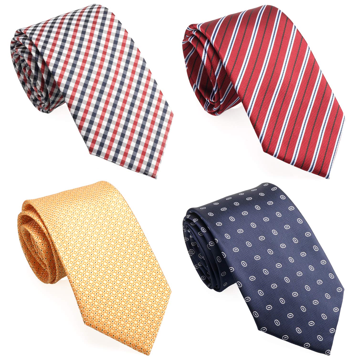 ZENXUS Corbatas largas XXL de 70 pulgadas, corbatas extralargas para hombres grandes y altos, rojo, azul marino, naranja dorado, paquete de 4