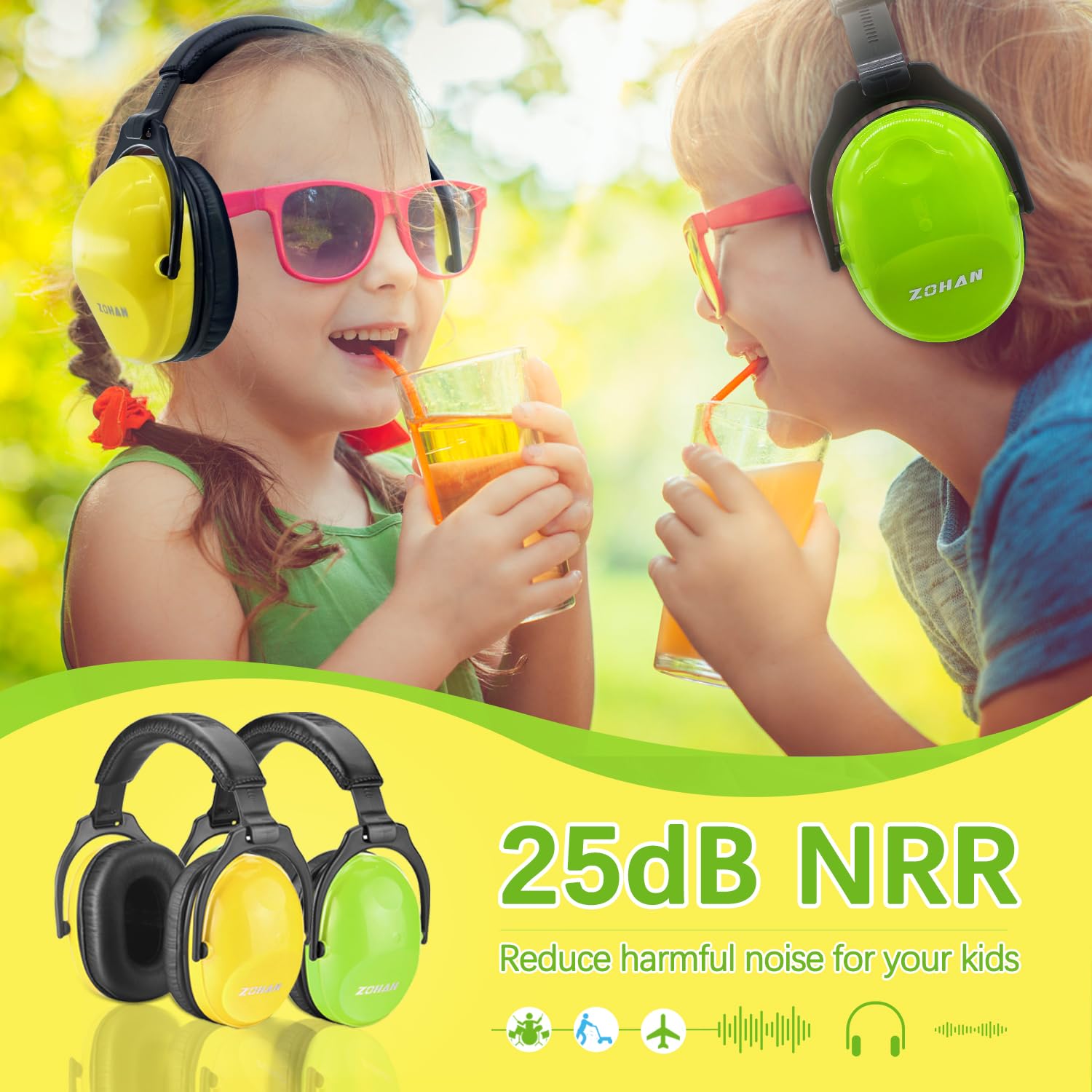 ZOHAN Protección auditiva para niños, paquete de 2, auriculares con cancelación de ruido para con