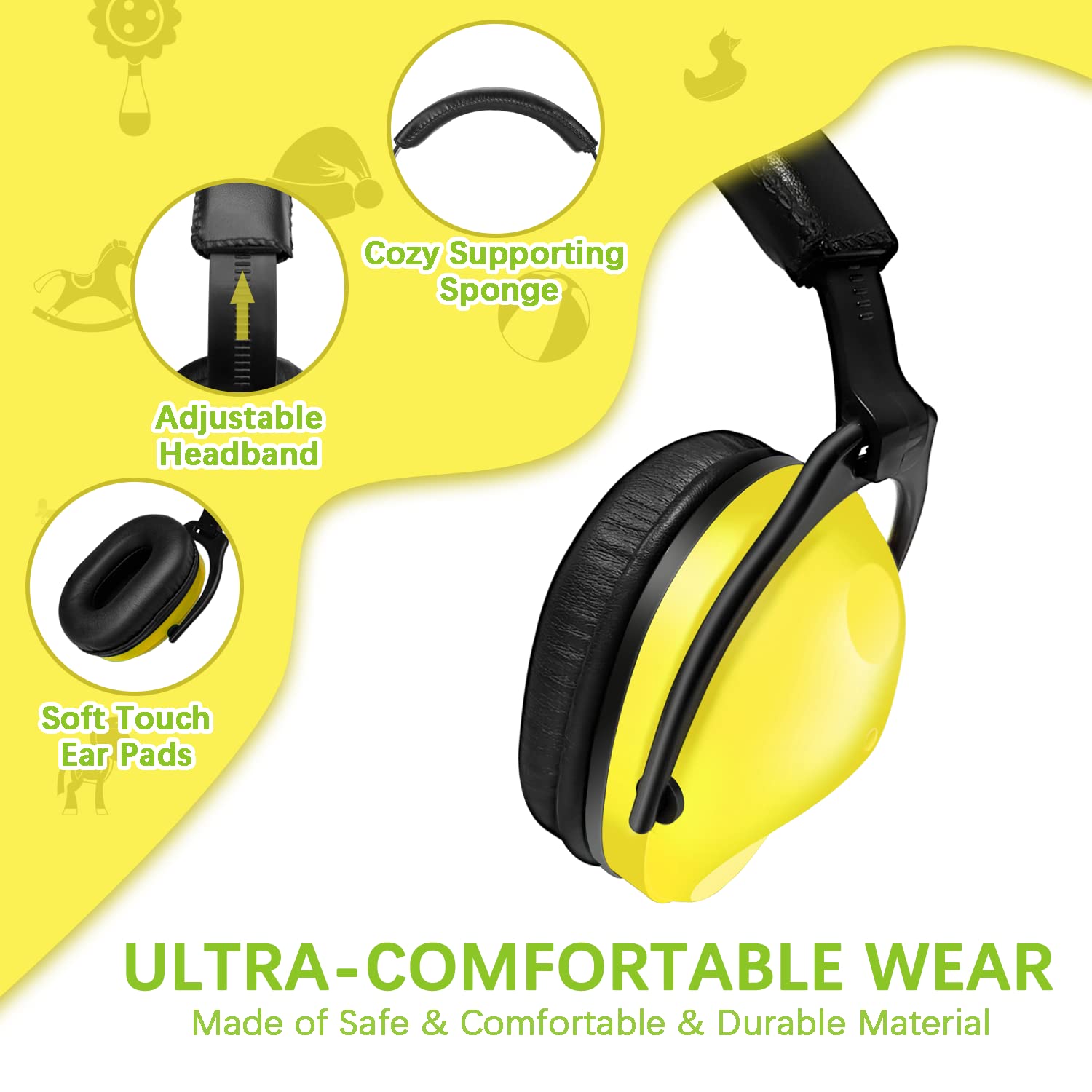 -NO METAL PARTS & THICKER EARPADS: Our kids' earmuffs are made of high quality material without any metal parts. Light enough not to compress the child's head. Thicker earpads are made of thick sound-isolating foam and have a thick interior for long-lasting comfort