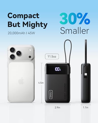 INIU Cargador portátil de 45 W, banco de energía más pequeño de 20000 mAh con cable USB-C integrado, batería de entrada y salida USB C de carga rápida, cargador de teléfono de viaje para iPhone 17 16 15 Air Samsung S25 S24 Google, beige
