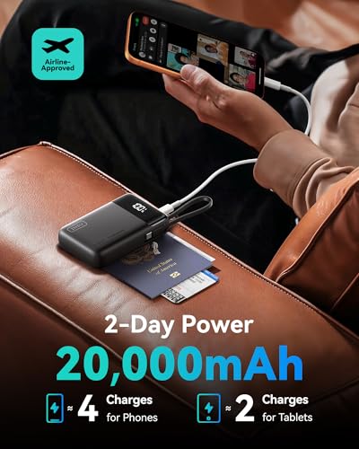 -Recharge Once, Power for a Week: Ideal for travelers and outdoor enthusiasts, the 20,000mAh charges your iPhone 16 up to 4 times. Recharge once and power through the week!