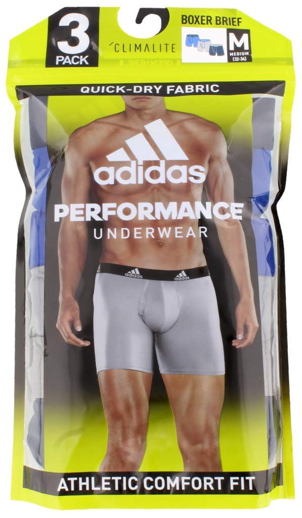 Description The ultimate in everyday comfort with a performance edge, adidas performance 3 pack underwear features our proven soft, stretchy moisture wicking fabric, an easy fit through the pouch, functional no gap fly, soft stitching, tagless waistband and no ride up construction.