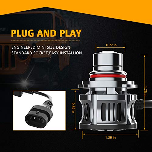 Auxbeam 9006 Bombilla de luz antiniebla LED, 6500K 4800LM de alta potencia 52W, 9006 HB4 Bombillas de luz antiniebla LED DRL de repuesto para automóviles, camiones, paquete de 2