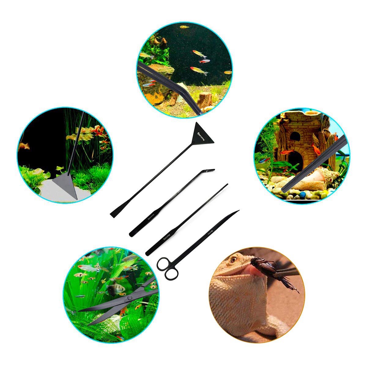 Pinzas para acuario, Capetsma Herramientas para plantas de acuario de acero inoxidable Herramientas largas para paisajismo acuático Tijeras Espátula Juego de herramientas para plantas acuáticas para agua dulce y salada