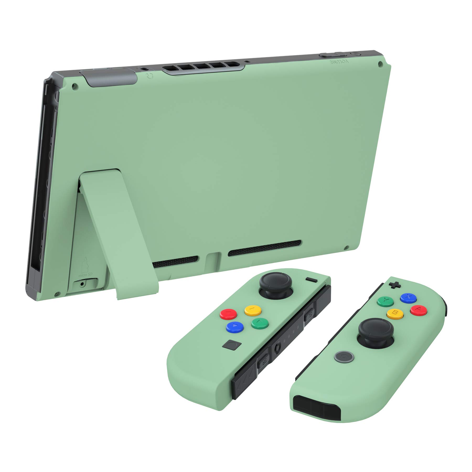 eXtremeRate DIY Botones de Repuesto para Nintendo Switch, Placa Trasera Verde Matcha para Consola Switch, Carcasa con Botones Coloridos para Controlador de Mano Joycon [Solo Carcasa, Sin Consola]