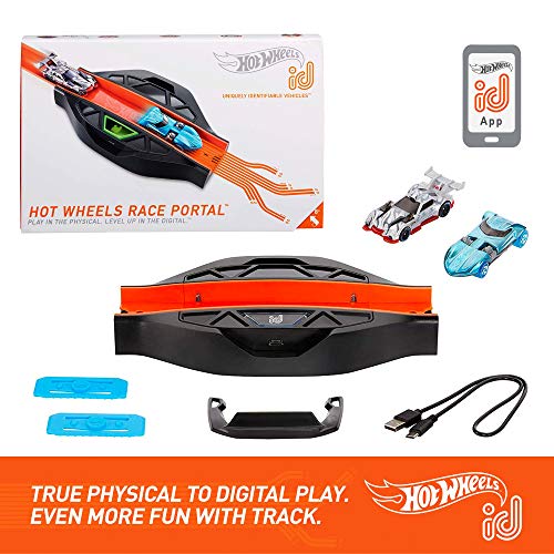 Hot Wheels id is a unique system of play that blends the exhilaration of Hot Wheels racing with a safe, connected platform of creativity, experimentation and competition. Download the free app to wirelessly measure speed and count laps with two exclusive Hot Wheels id vehicles and the Hot Wheels Race Portal. The supercars are digitally enhanced with an embedded NFC chip that give each one a unique identity. Download the free app, charge the race portal and connect to smart device and launch the app! Colors and decorations may vary.