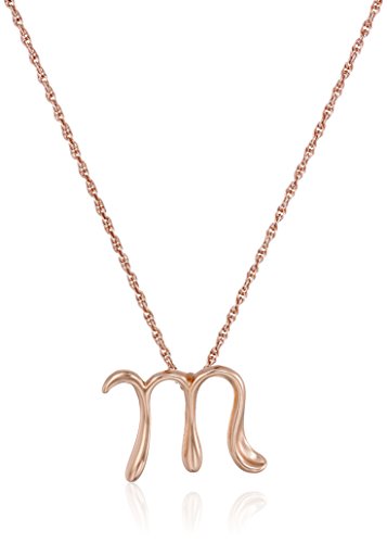 Amazon Collection Collar con colgante de inicial cursiva "M" de plata de ley chapada en oro rosa de 14 k, 18 "