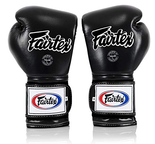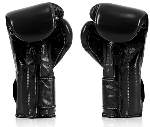 Guantes de boxeo de Fairtex Muay Thai BGV9 - Guantes de entrenamiento de estilo mexicano de bateador pesado y guantes de combate para Kick Boxing MMA K1 (negro, 12 oz)