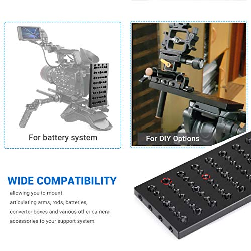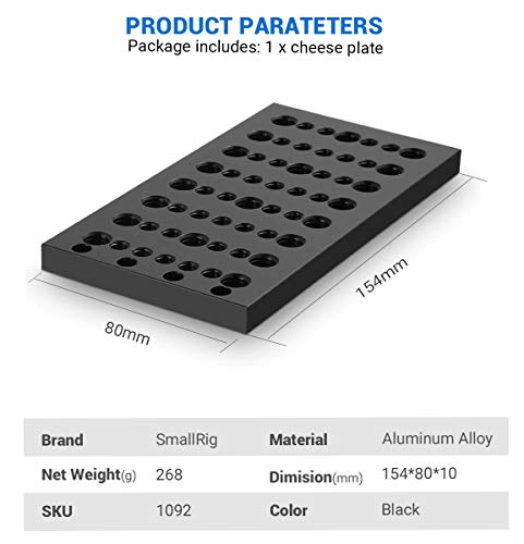 SMALLRIG Cheese Plate Multi-purpose Mounting Plate 1092 is equipped with plenty of 1/4''-20 and 3/8"-16 holes, allowing you to mount articulating arms, rods, batteries, converter boxes and various other camera accessories to your support system.