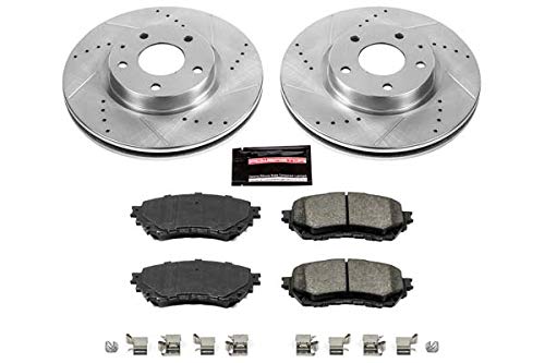 Power Stop K6968 Pastillas de freno delanteras Z23 de fibra de carbono con rotores de freno ranurados perforados para Mazda 6 2014 2015 2016 2017 2018