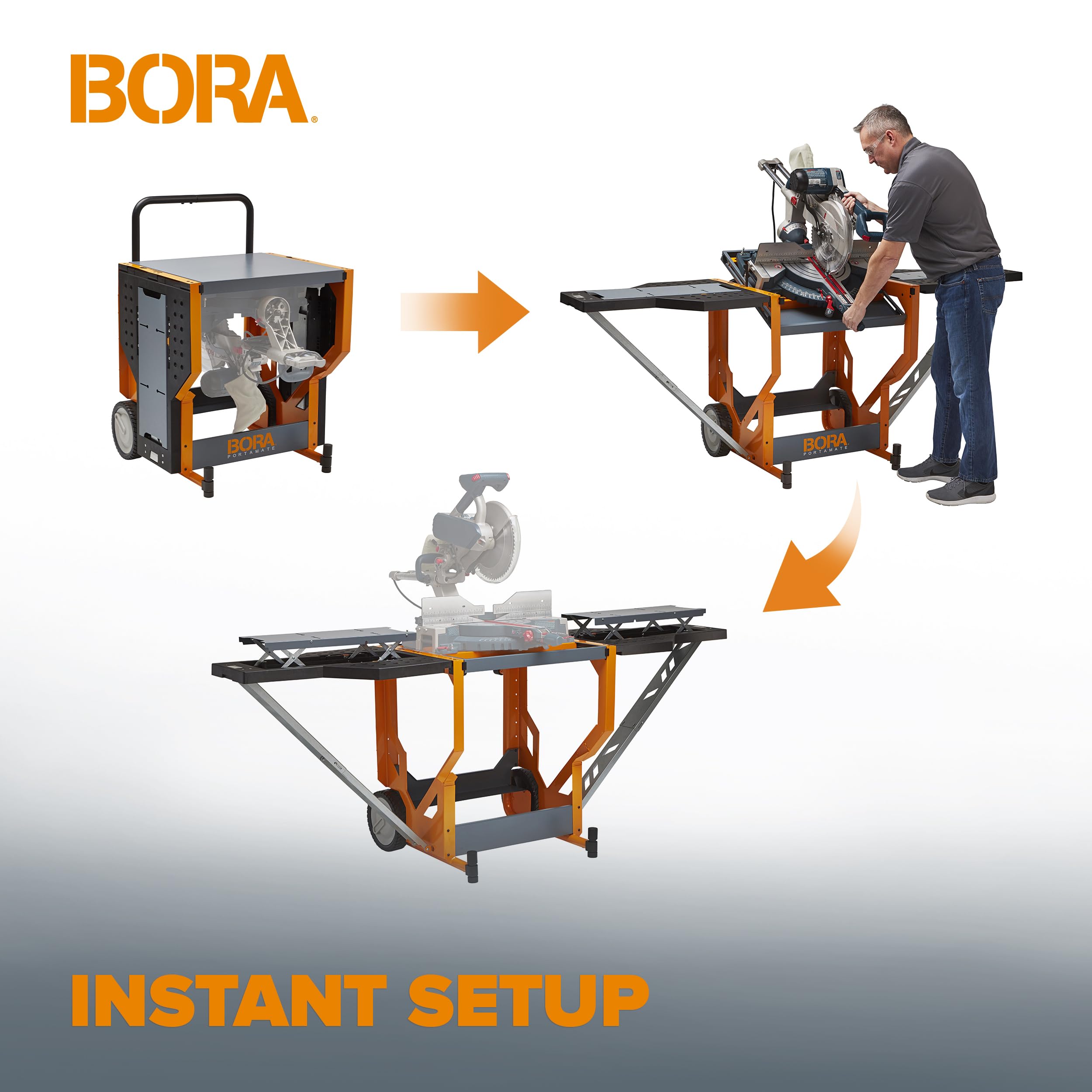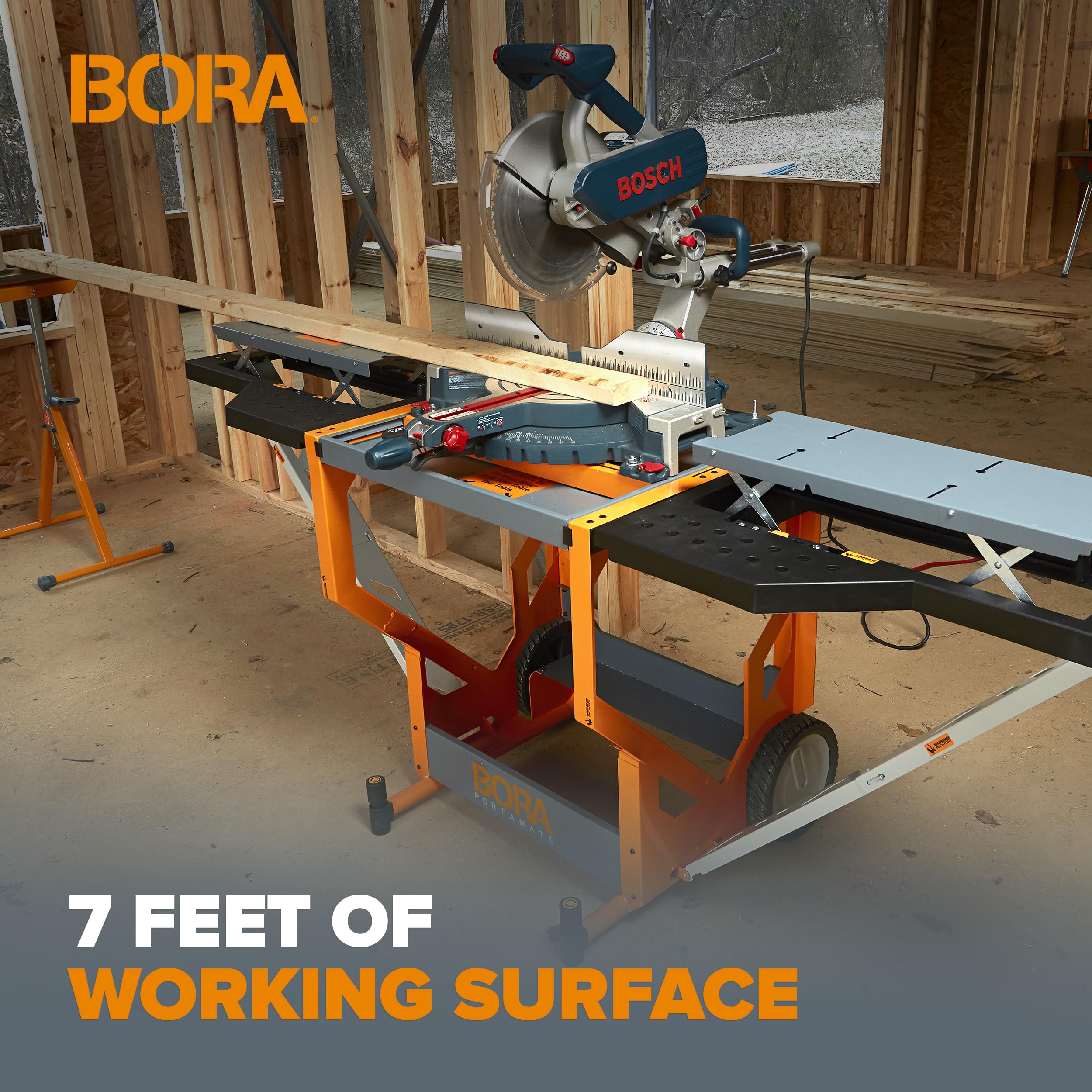 Bora Portamate Estación de trabajo con soporte para sierra ingletadora, peso máximo de 400 libras, soporte portátil para sierra de mesa con ruedas, banco de trabajo con extensiones de ala plegables Soportes para sierra ingletadora PM-8000