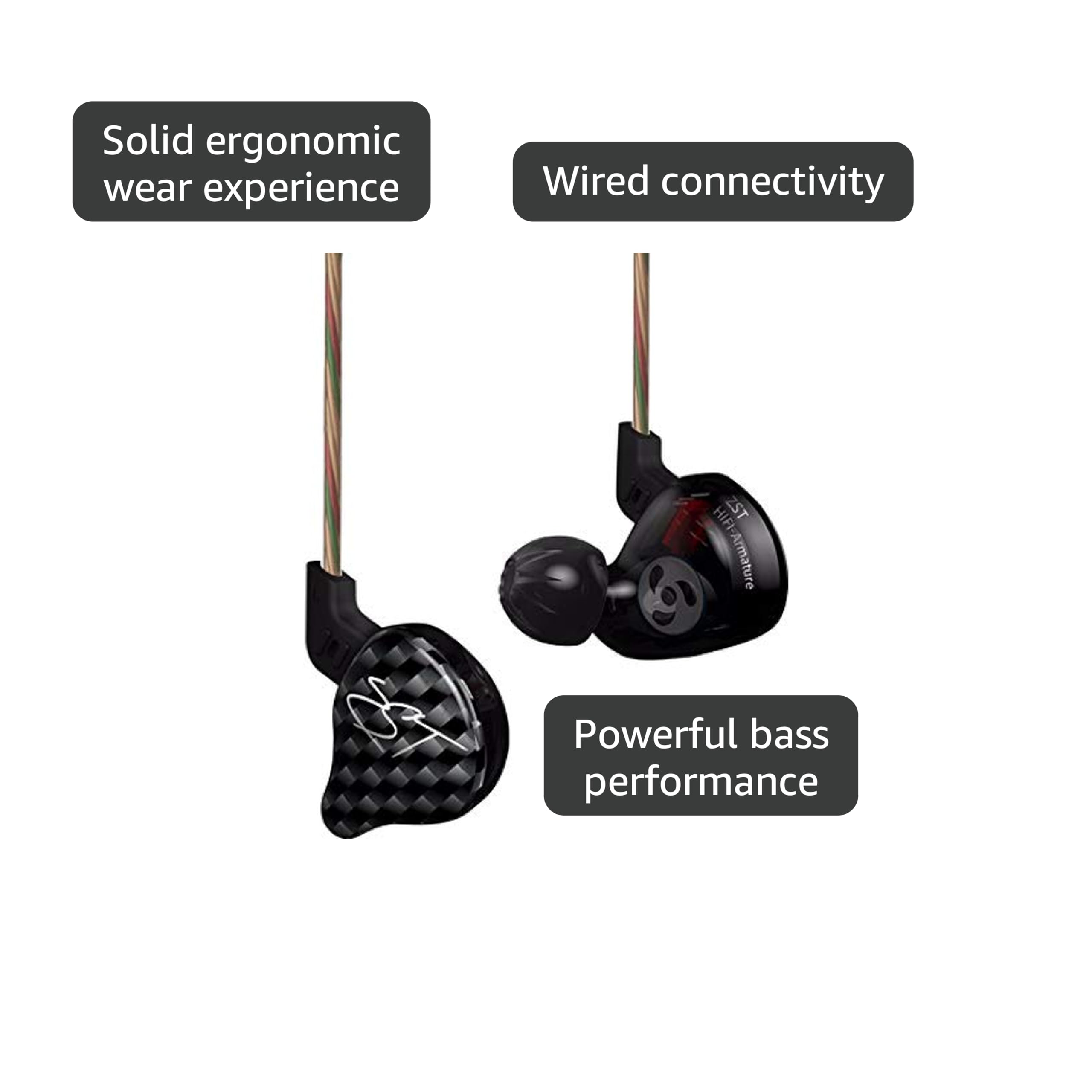 Auriculares intrauditivos híbridos dinámicos KZ ZST con controlador dual (negro con micrófono)