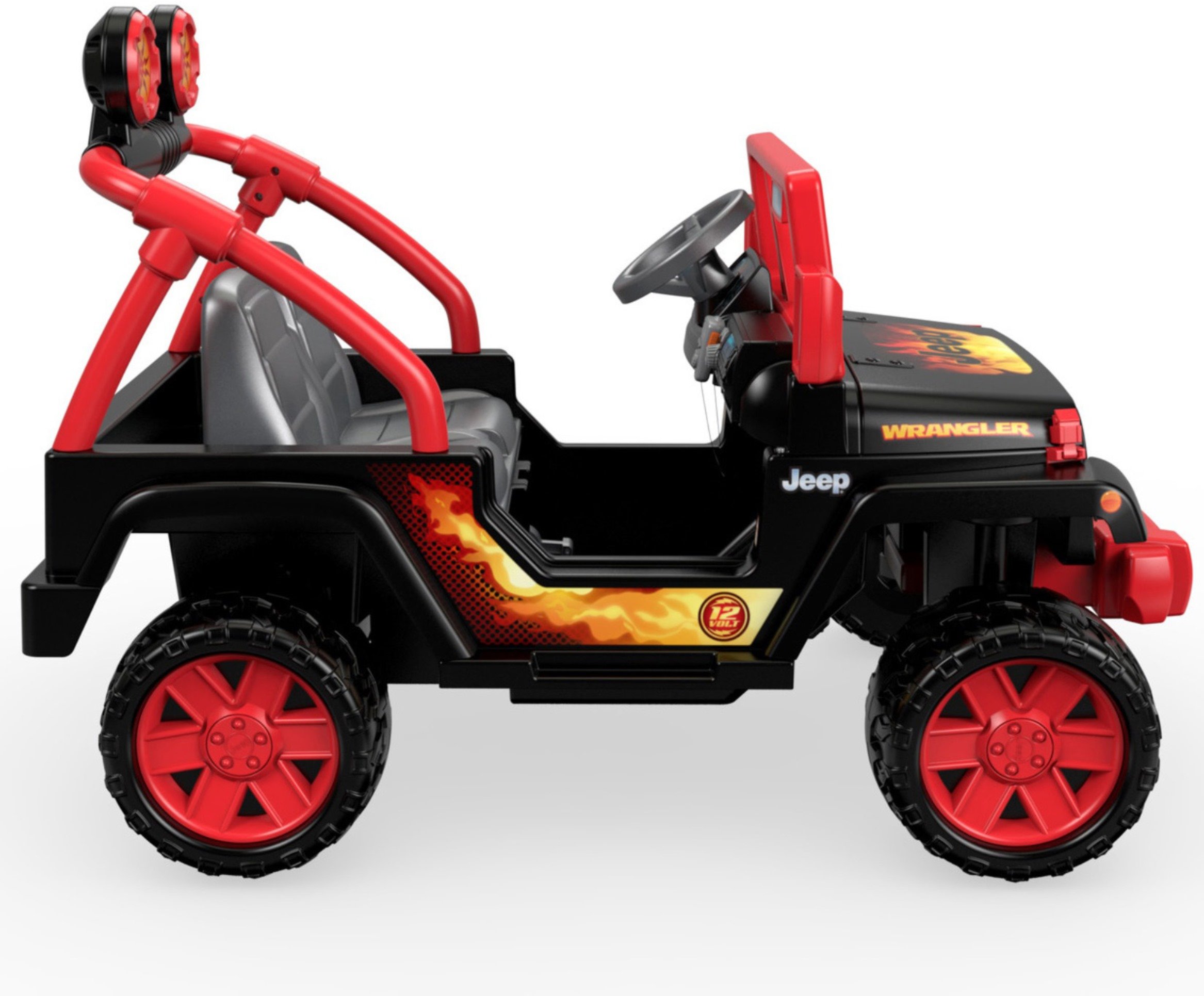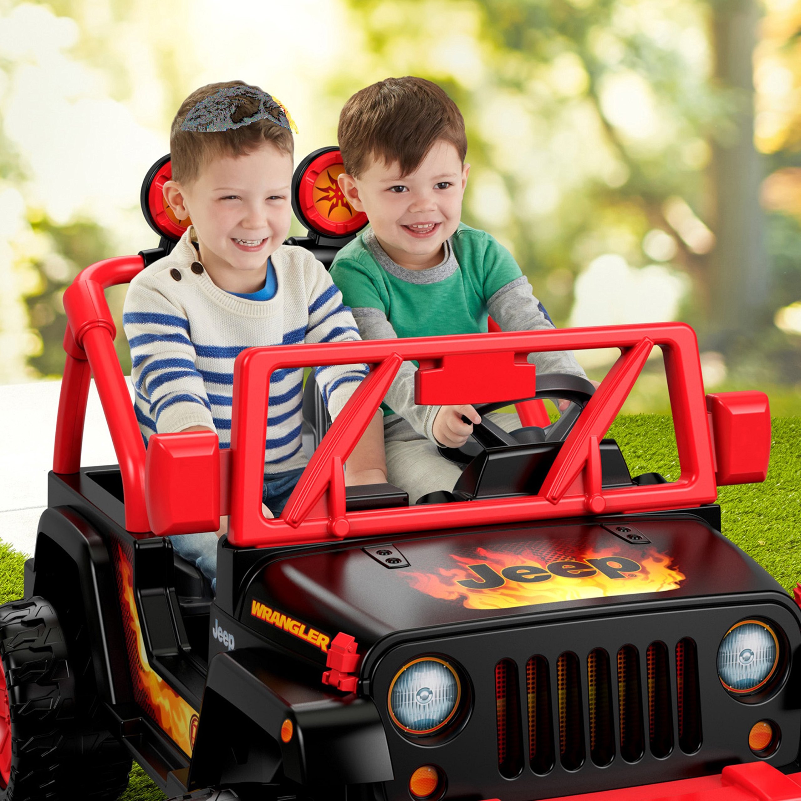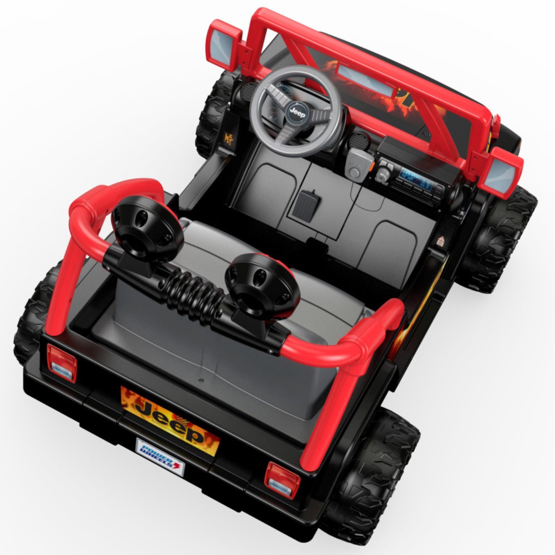 Get ready for tons of rockin’ and rollin’ with the Power Wheels Tough Talking Jeep Wrangler! This rockin’ ride-on is equipped with a real working microphone featuring fun sound effects and a voice-amplifying speaker, two preloaded tunes and fun vehicle sounds on the pretend radio, and realistic Jeep Wrangler styling. The roomy rear storage area is perfect for storing all their on-the-go gear! And with two forward drive speeds (2.5 or 5 mph) plus reverse, this ride-on powers over hard surfaces and grass. Plus, it’s fully loaded with Power Lock brakes and a parent-controlled high-speed lock out for beginner drivers!