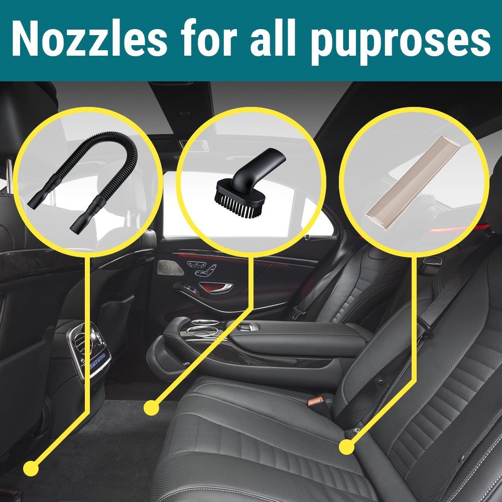 -Interior Car Cleaning Kit Includes: 3 attachments (flathead, extendable, or brush nozzle) for detailing, carry bag, filter brush, and spare HEPA filter. Must have car accessories for men or women; these gadgets will keep the interior cute and tidy.