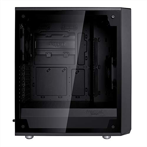 Fractal Design Meshify C - Caja compacta para computadora - Flujo de aire/enfriamiento de alto rendimiento - 2 ventiladores incluidos - Cubierta para fuente de alimentación - Interior modular - Preparado para refrigeración por agua - USB3.0 - Vidrio templ