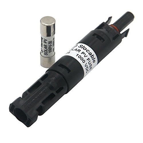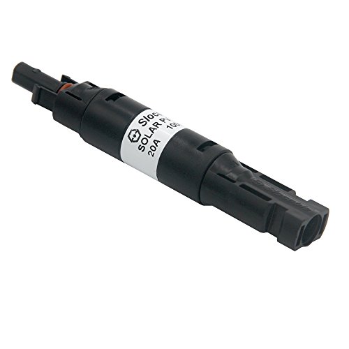 Size:20AThis product is a 20A fuse embedded in a waterproof fuse holder and features connector cables on each end. See image in photo gallery for technical specifications. This Connector compatible fuse holder + fuse is designed to provide over-current protection for solar arrays. The use of a fuse can protect your solar array from unnecessary damage from an over-current event. Specifications: 20A Solar In-Line Fuse Holder Waterproof w/ Fuse Rated Current: 20A Rated Voltage: 1000 V DC Fuse Can Replace Insulation Material: PPO Net Weight: 53g Dimensions: 4.8 x 0.8 x 0.8 In Test Voltage: 6000V (50Hz,1 min) Degree of Protection: IP2*/IP67 Contact Resistance of Plug Connector:1m Insertion Force / Withdrawal Force: 50N / 50N Contact Material: Copper, Silver Plated Connection type: adapter (it is very convenient) Operation Temperature range: -40 to +125 Cel. Degrees Package Included: 1 x Fuse Photovoltaic Connectors Safety tips Caution: Do not open this holder under LOAD For protection against electric shock, PV connectors must be isolated from the power supply while being assembled or disassembled. The end product must provide protection from electric shock. Unplugging under load: PV plug connections must not be unplugged while under load. They can be placed in a no load state by switching off the DC/AC converter or breaking the AC circuit interrupter. Plugging and unplugging while under voltage is permitted. Disconnected connectors should be protected from dirt and water with sealing caps.