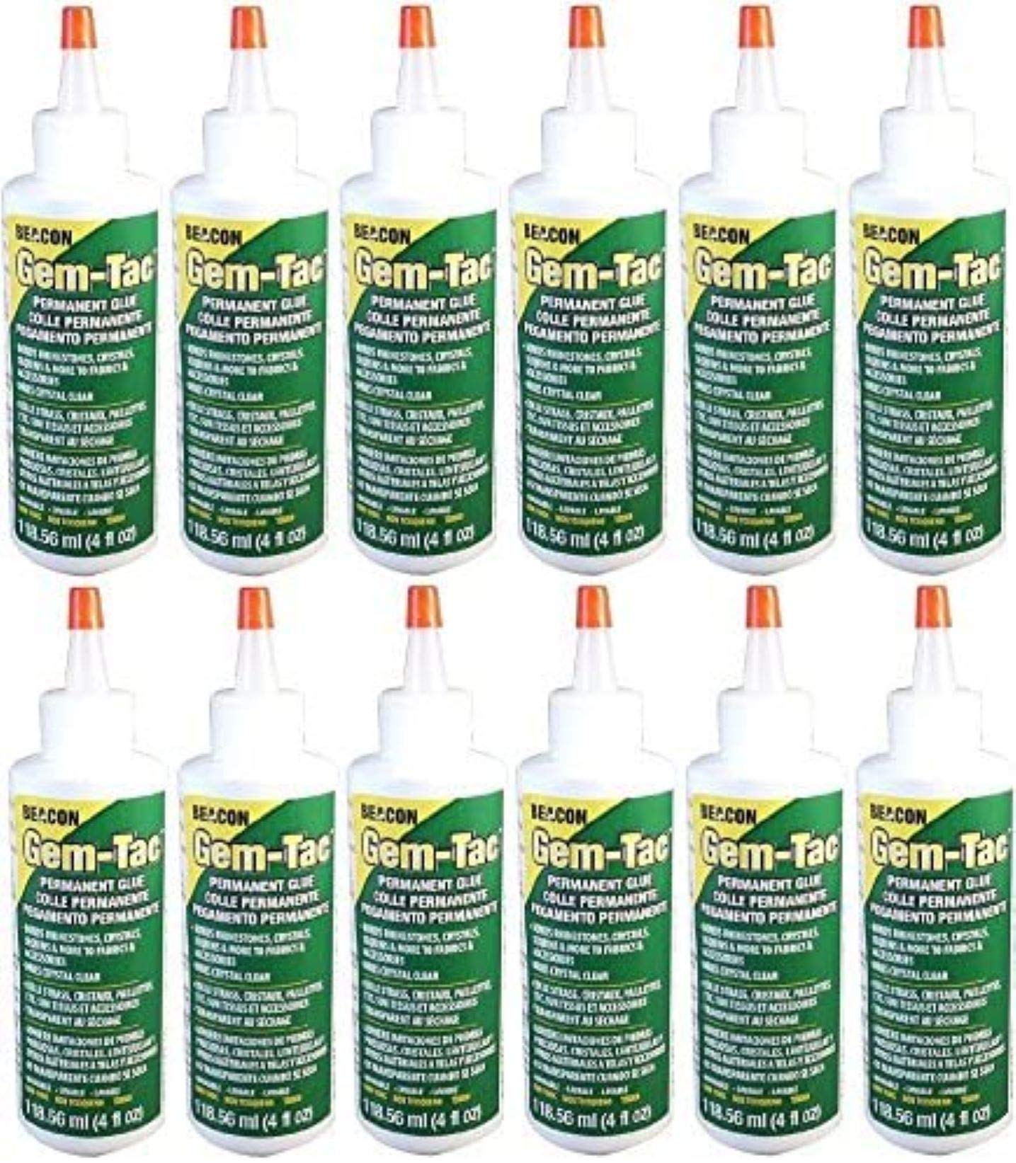 BEACON Gem-Tac Adhesivo de calidad premium para unir de forma segura diamantes de imitación y gemas, a base de agua, resistente a los rayos UVA, 4 onzas, paquete de 12