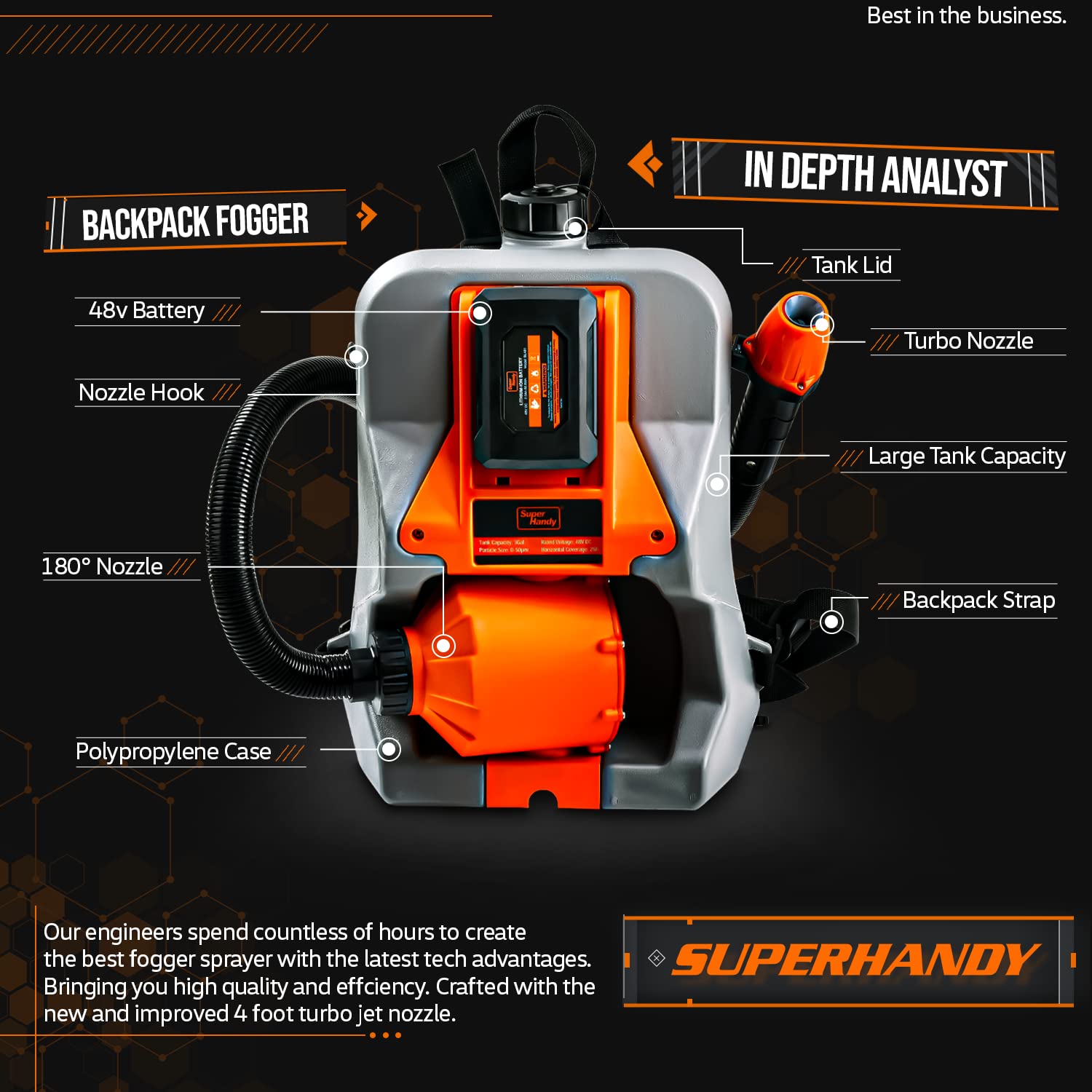 -EFFICIENT DESIGN - Built for high speed aerosol distribution, fast diffusion, and strong penetration; Studies show that ULV foggers generate a fog/mist formed of Ultra Low Volume (ULV) droplets of 0-50μm in size and are ideal for fighting pathogens and vector carriers; Equipped w/ a Large wide mouth for easy filling and includes a screen filter to keep dirt/debris out of tank; The extended coiled hose allows for perfect misting to keep dust down and humidity up during asbestos abatement
