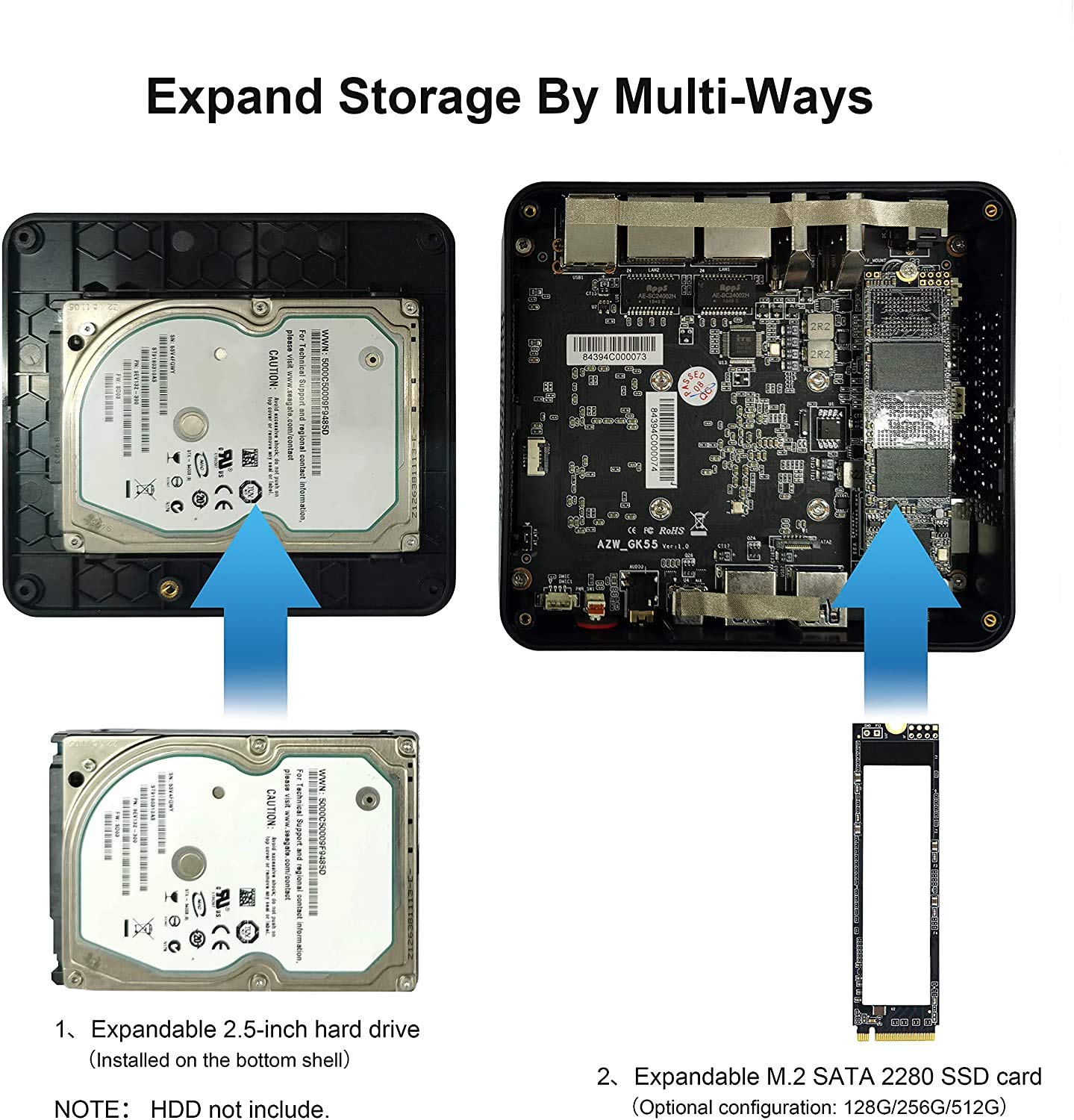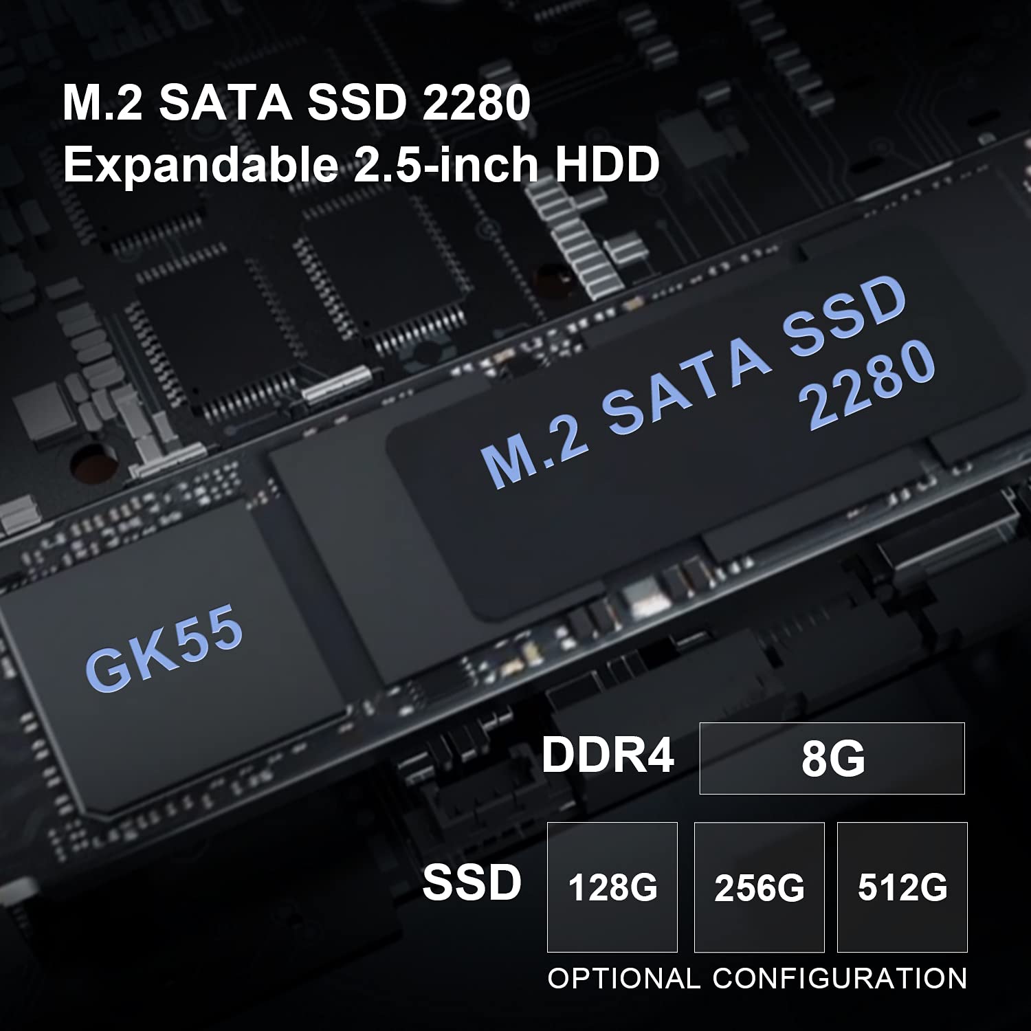 Beelink Mini PC GK55 8GB DDR4 256GB SSD Intel J4125 (4C/4T 4MB de caché de hasta 2.7 GHz), Mini Computer admite 4K Salida Dual HDMI/2.4G+5G WiFi/BT4.0/2.5 "HDD Extensión/Dual Gigabit Ethernet Ethernet