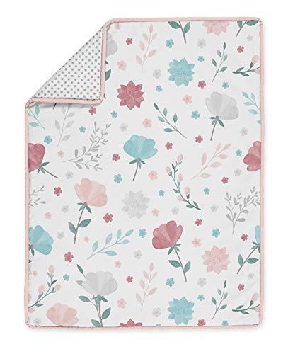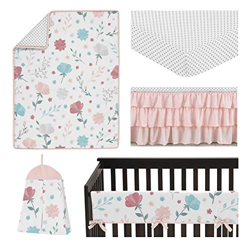 Sweet Jojo Designs - Juego de ropa de cama para cuna de guardería con flores de rosas florales, 5 piezas, color rosa, verde azulado, turquesa, agua, azul, gris, flor pop, boho, shabby chic, moderno, colorido, acuarela, rosas