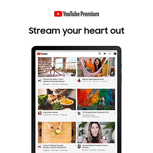 -¹S Pen included with the tablet.²Based on average battery life under typical usage conditions. Actual battery life depends on factors such as network, features selected, and other application-usage patterns. Results may vary.³With eligible purchase. New users only (no past trial of YouTube Premium, YouTube Music Premium, YouTube Red or Google Play Music). Redeem in the YouTube application on eligible devices between January 14, 2021 and April 5, 2022 at 11:59pm PST.