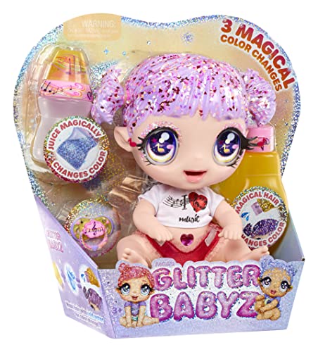 -SPARKLY BABY DOLL: Follow the sparkle into the sunset, take a left at the moon and you’ll discover the magical world of Glitter Babyz. Glitter Babyz are glittering, beautiful, magical babies that have big, beautiful eyes, sparkles on their eye lashes and glitter in their hair.