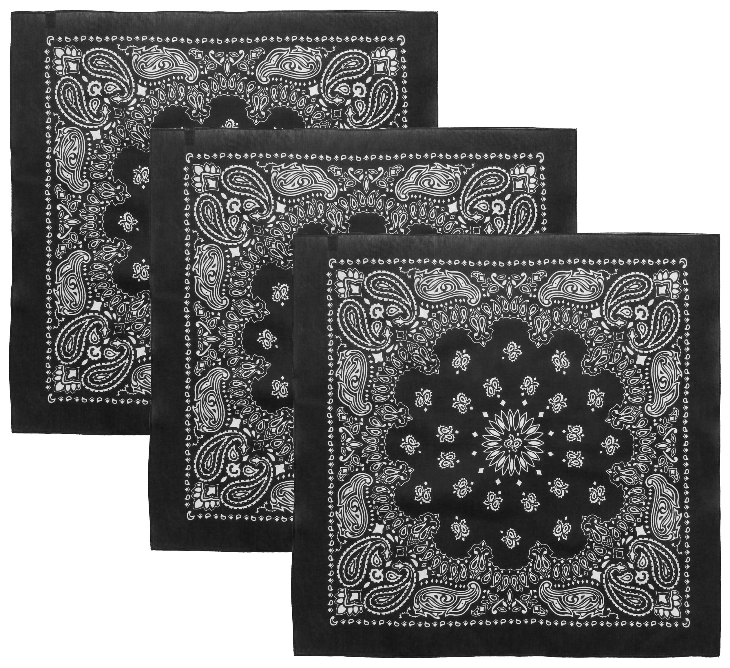 ARMYU Paquete de 3 pañuelos militares Trainmen Paisley Jumbo para la cabeza, pañuelo para la cabeza, 100% algodón, bandana para la cara, 27 pulgadas (negro)