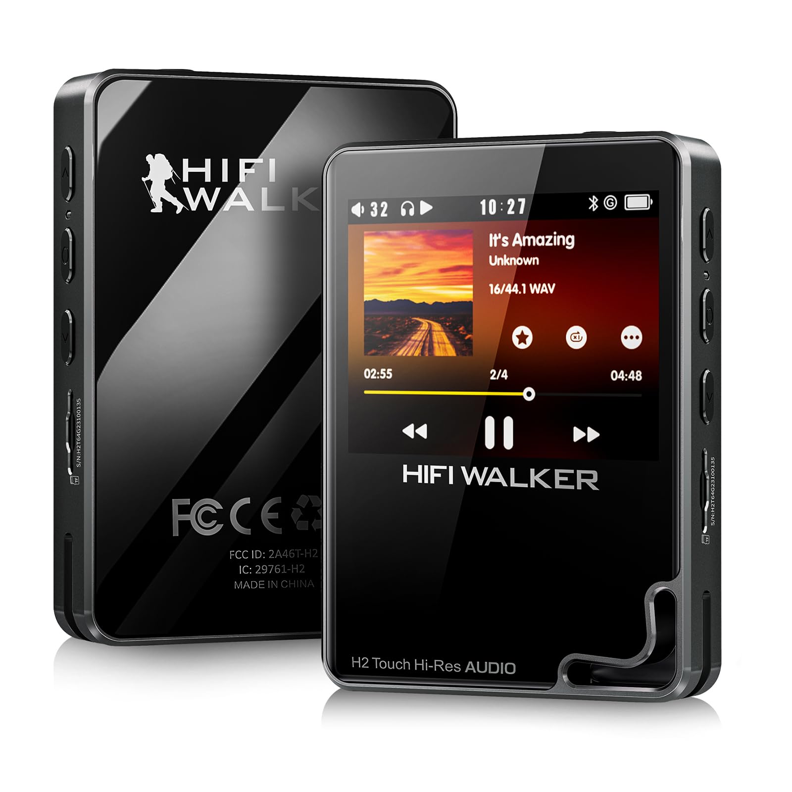 HIFI WALKER H2 Touch 64GB Reproductor de MP3 de alta resolución Bluetooth 5.2, pantalla táctil HD de 2.4", reproductor de audio digital, reproductor FLAC sin pérdidas DSD, reproductor de música Bluetooth con tarjeta de memoria de 64GB, admite hasta 512GB